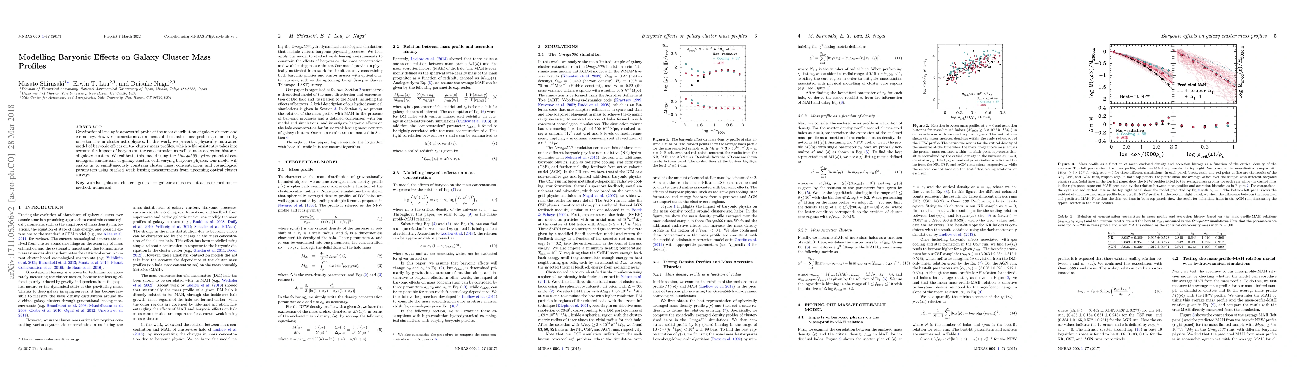 Gravitational lensing is a powerful probe of the mass distribution of galaxy clusters and cosmology. However, accurate measurements of the cluster mass profiles are limited by uncertainties in cluster astrophysics. In this work, we present a physically motivated model of baryonic effects on the cluster mass profiles, which self-consistently takes into account the impact of baryons on the concentration as well as mass accretion histories of galaxy clusters. We calibrate this model using the Omega500 hydrodynamical cosmological simulations of galaxy clusters with varying baryonic physics. Our model will enable us to simultaneously constrain cluster mass, concentration, and cosmological parameters using stacked weak lensing measurements from upcoming optical cluster surveys.