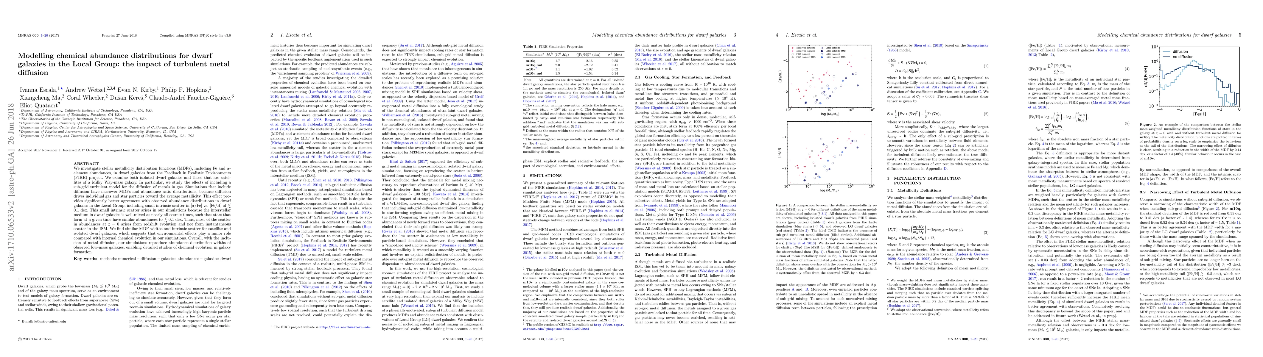 We investigate stellar metallicity distribution functions (MDFs), including Fe and ${\alpha}$-element abundances, in dwarf galaxies from the Feedback in Realistic Environments (FIRE) project. We examine both isolated dwarf galaxies and those that are satellites of a Milky Way-mass galaxy. In particular, we study the effects of including a sub-grid turbulent model for the diffusion of metals in gas. Simulations that include diffusion have narrower MDFs and abundance ratio distributions, because diffusion drives individual gas and star particles toward the average metallicity. This effect provides significantly better agreement with observed abundance distributions of dwarf galaxies in the Local Group, including the small intrinsic scatter in [${\alpha}$/Fe] vs. [Fe/H] (less than 0.1 dex). This small intrinsic scatter arises in our simulations because the interstellar medium (ISM) in dwarf galaxies is well-mixed at nearly all cosmic times, such that stars that form at a given time have similar abundances to within 0.1 dex. Thus, most of the scatter in abundances at z = 0 arises from redshift evolution and not from instantaneous scatter in the ISM. We find similar MDF widths and intrinsic scatter for satellite and isolated dwarf galaxies, which suggests that environmental effects play a minor role compared with internal chemical evolution in our simulations. Overall, with the inclusion of metal diffusion, our simulations reproduce abundance distribution widths of observed low-mass galaxies, enabling detailed studies of chemical evolution in galaxy formation.
