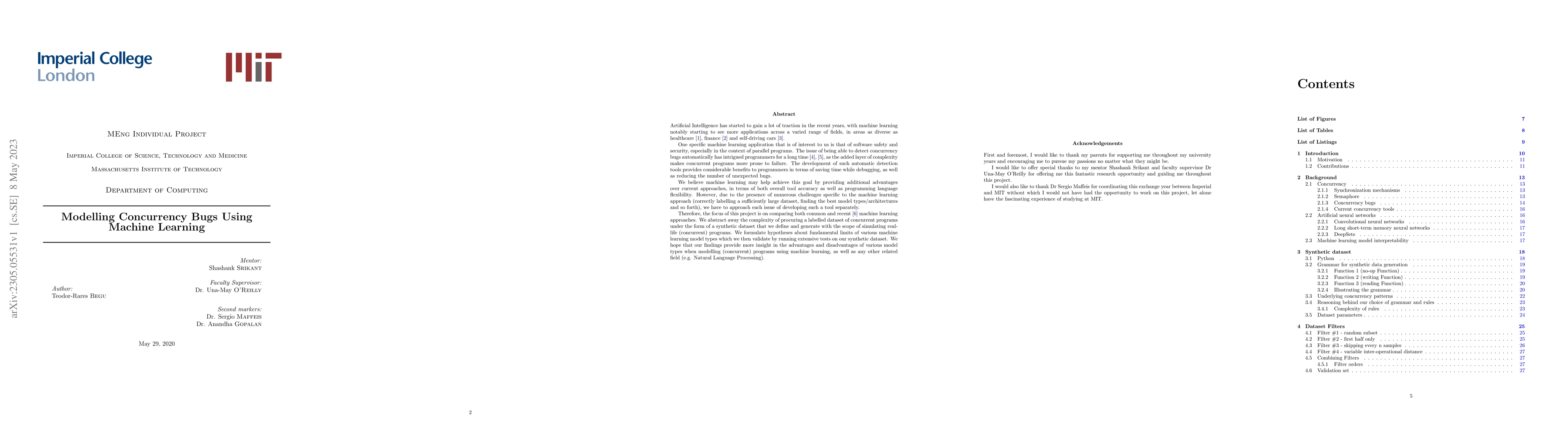 This paper explores the application of machine learning to detect concurrency bugs in parallel programs, aiming to improve software safety and security. It generates synthetic datasets to simulate real-life concurrent programs and tests various machine learning models to identify their effectiveness and limitations in this context.