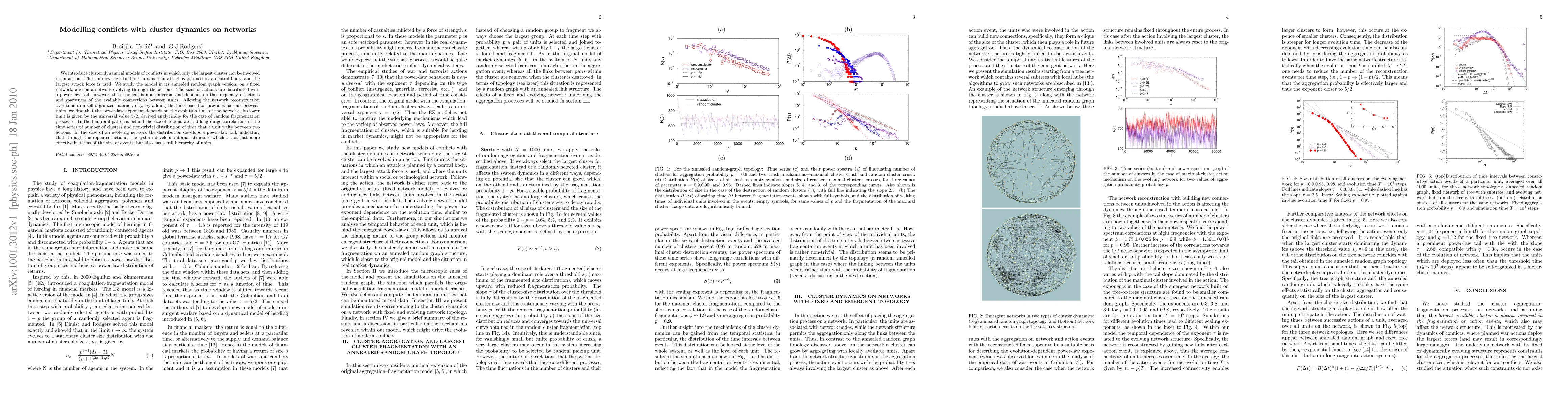 We introduce cluster dynamical models of conflicts in which only the largest cluster can be involved in an action. This mimics the situations in which an attack is planned by a central body, and the largest attack force is used. We study the model in its annealed random graph version, on a fixed network, and on a network evolving through the actions. The sizes of actions are distributed with a power-law tail, however, the exponent is non-universal and depends on the frequency of actions and sparseness of the available connections between units. Allowing the network reconstruction over time in a self-organized manner, e.g., by adding the links based on previous liaisons between units, we find that the power-law exponent depends on the evolution time of the network. Its lower limit is given by the universal value 5/2, derived analytically for the case of random fragmentation processes. In the temporal patterns behind the size of actions we find long-range correlations in the time series of number of clusters and non-trivial distribution of time that a unit waits between two actions. In the case of an evolving network the distribution develops a power-law tail, indicating that through the repeated actions, the system develops internal structure which is not just more effective in terms of the size of events, but also has a full hierarchy of units.