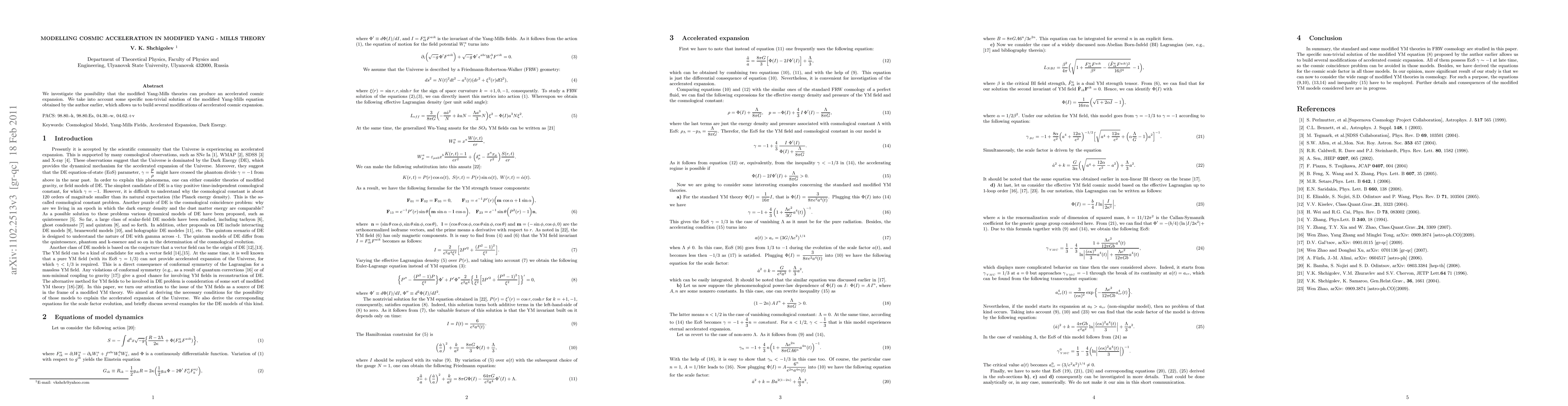 This research explores if modified Yang-Mills theories can account for cosmic acceleration, utilizing a specific non-trivial solution from earlier work to develop models of accelerated cosmic expansion.