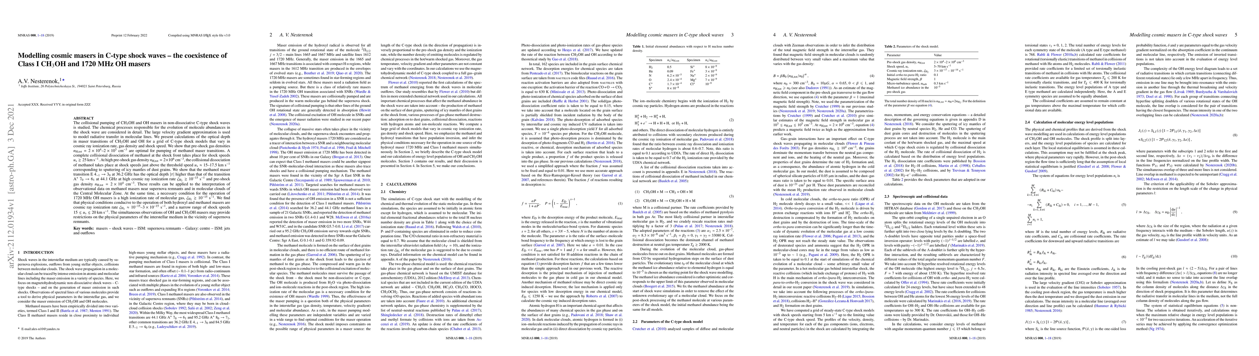 This research models the behavior of cosmic masers, specifically CH3OH and 1720 MHz OH masers, in C-type shock waves. Using the large velocity gradient approximation for radiative transfer, it finds optimal pre-shock gas densities for methanol maser pumping and shock speeds for methanol dissociation. The study reveals that high cosmic ray ionization rates and specific shock speeds favor both hydroxyl and methanol maser operation, with implications for interpreting observations near supernova remnants and in the Central Molecular Zone.