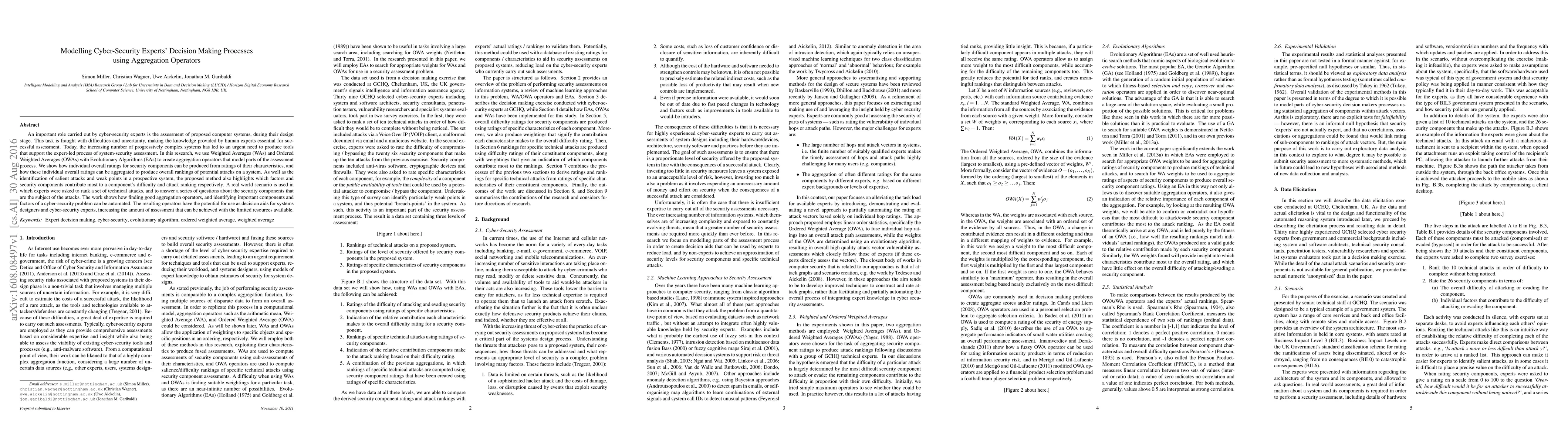 An important role carried out by cyber-security experts is the assessment of proposed computer systems, during their design stage. This task is fraught with difficulties and uncertainty, making the knowledge provided by human experts essential for successful assessment. Today, the increasing number of progressively complex systems has led to an urgent need to produce tools that support the expert-led process of system-security assessment. In this research, we use weighted averages (WAs) and ordered weighted averages (OWAs) with evolutionary algorithms (EAs) to create aggregation operators that model parts of the assessment process. We show how individual overall ratings for security components can be produced from ratings of their characteristics, and how these individual overall ratings can be aggregated to produce overall rankings of potential attacks on a system. As well as the identification of salient attacks and weak points in a prospective system, the proposed method also highlights which factors and security components contribute most to a component's difficulty and attack ranking respectively. A real world scenario is used in which experts were asked to rank a set of technical attacks, and to answer a series of questions about the security components that are the subject of the attacks. The work shows how finding good aggregation operators, and identifying important components and factors of a cyber-security problem can be automated. The resulting operators have the potential for use as decision aids for systems designers and cyber-security experts, increasing the amount of assessment that can be achieved with the limited resources available.