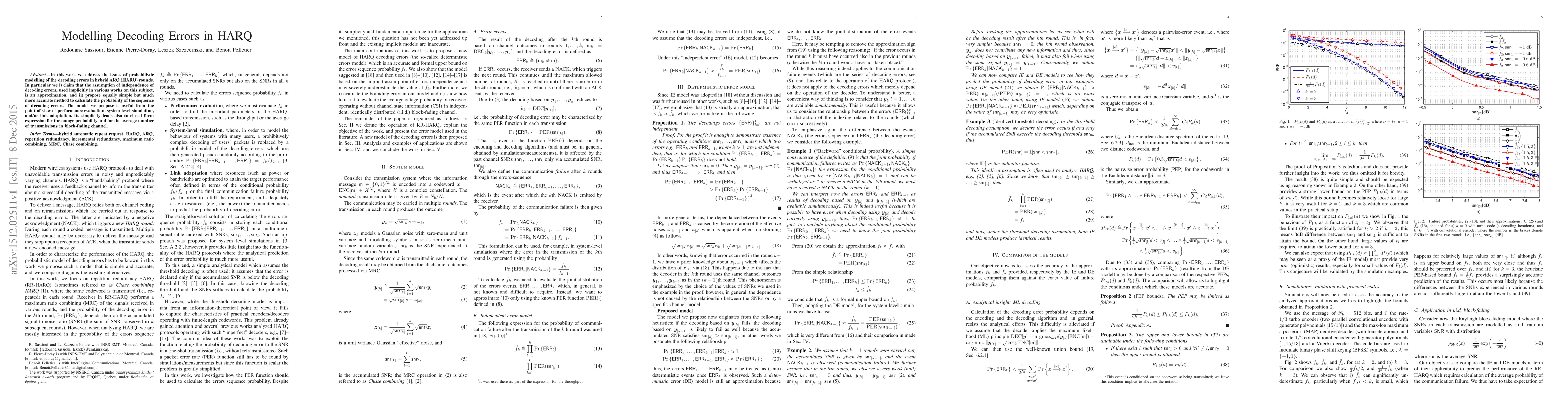 Researchers propose a new method to model decoding errors in hybrid ARQ (HARQ) rounds, offering more accurate calculations for performance evaluation and system-level simulation.