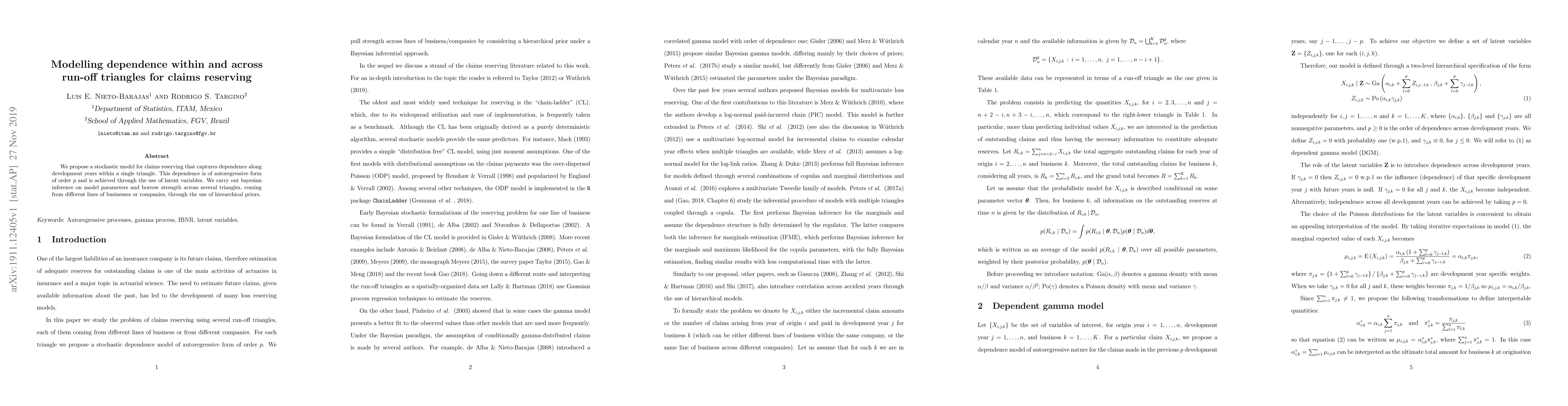 We propose a stochastic model for claims reserving that captures dependence along development years within a single triangle. This dependence is of autoregressive form of order $p$ and is achieved through the use of latent variables. We carry out bayesian inference on model parameters and borrow strength across several triangles, coming from different lines of businesses or companies, through the use of hierarchical priors.