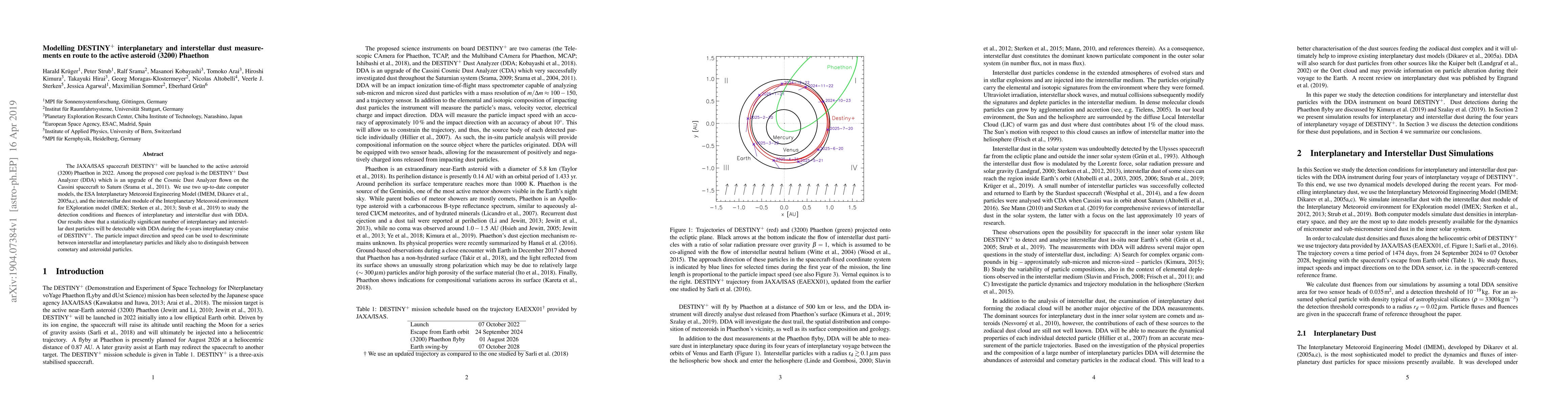 This paper models the detection conditions and fluences of interplanetary and interstellar dust for the DESTINY+ mission's Dust Analyzer (DDA) using updated computer models. Results indicate a significant number of dust particles will be detectable during the mission's 4-year interplanetary cruise, allowing for discrimination between different types of particles.