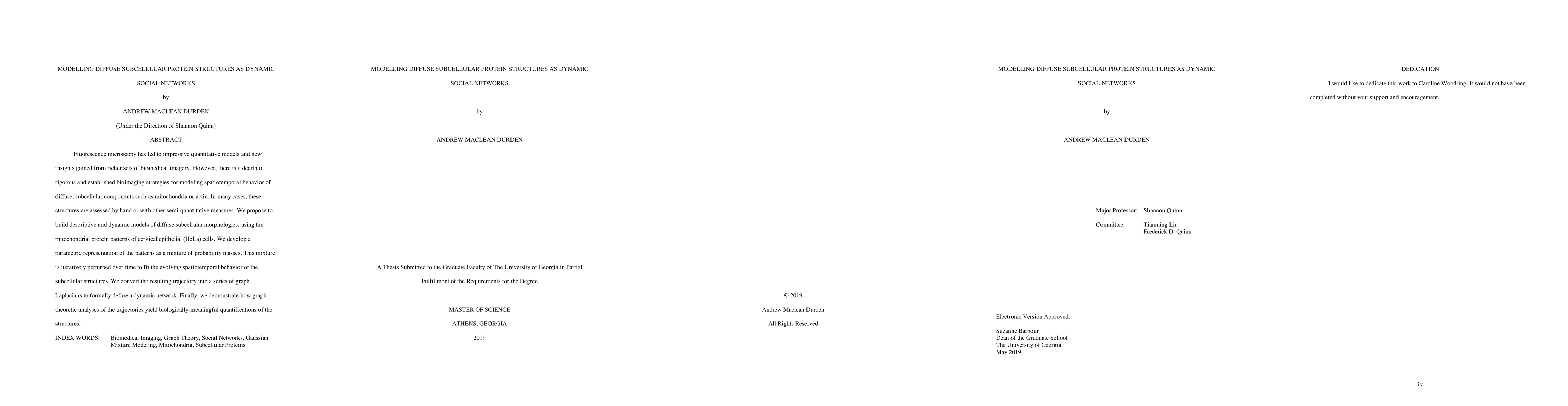 This paper proposes a novel parametric model to dynamically represent diffuse subcellular structures like mitochondria in HeLa cells using fluorescence microscopy data. The model transforms evolving mitochondrial patterns into dynamic social networks, enabling biologically meaningful quantifications through graph theoretic analyses.