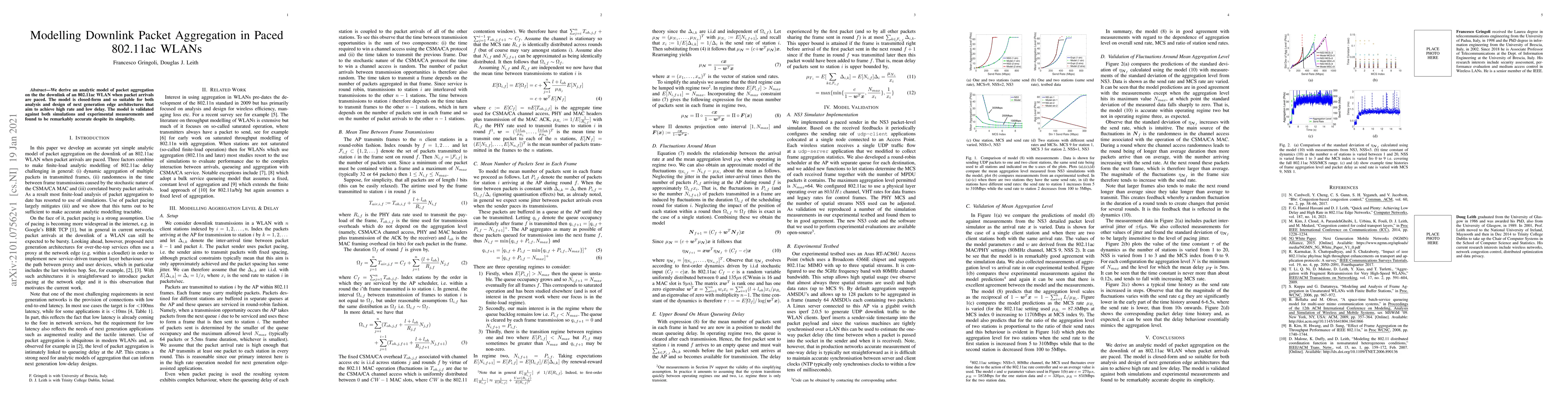We derive an analytic model of packet aggregation on the the downlink of an 802.11ac WLAN when packet arrivals are paced. The model is closed-form and so suitable for both analysis and design of next generation edge architectures that aim to achieve high rate and low delay. The model is validated against both simulations and experimental measurements and found to be remarkably accurate despite its simplicity.