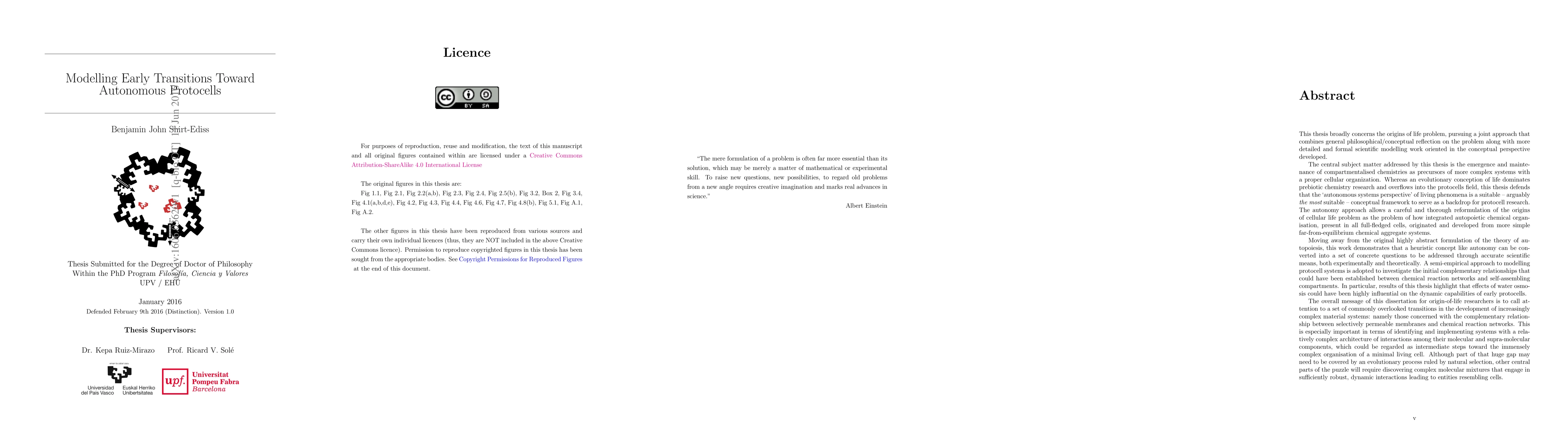 This thesis broadly concerns the origins of life problem, pursuing a joint approach that combines general philosophical/conceptual reflection on the problem along with more detailed and formal scientific modelling work oriented in the conceptual perspective developed. The central subject matter addressed is the emergence and maintenance of compartmentalised chemistries as precursors of more complex systems with a proper cellular organization. Whereas an evolutionary conception of life dominates prebiotic chemistry research and overflows into the protocells field, this thesis defends that the 'autonomous systems perspective' of living phenomena is a suitable - arguably the most suitable - conceptual framework to serve as a backdrop for protocell research. The autonomy approach allows a careful and thorough reformulation of the origins of cellular life problem as the problem of how integrated autopoietic chemical organisation, present in all full-fledged cells, originated and developed from more simple far-from-equilibrium chemical aggregate systems.