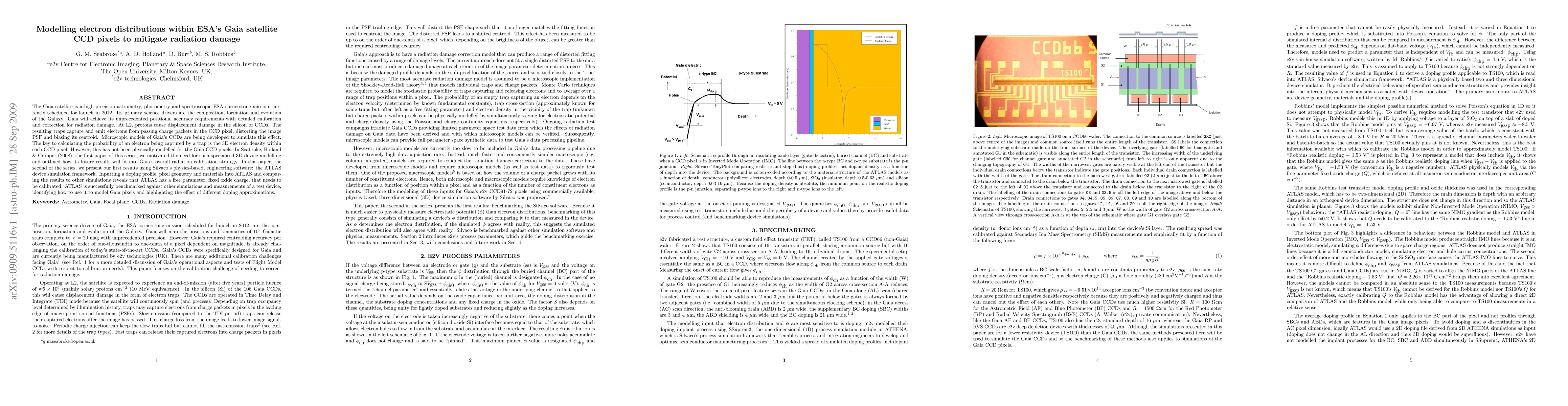 The Gaia satellite is a high-precision astrometry, photometry and spectroscopic ESA cornerstone mission, currently scheduled for launch in 2012. Its primary science drivers are the composition, formation and evolution of the Galaxy. Gaia will achieve its unprecedented positional accuracy requirements with detailed calibration and correction for radiation damage. At L2, protons cause displacement damage in the silicon of CCDs. The resulting traps capture and emit electrons from passing charge packets in the CCD pixel, distorting the image PSF and biasing its centroid. Microscopic models of Gaia's CCDs are being developed to simulate this effect. The key to calculating the probability of an electron being captured by a trap is the 3D electron density within each CCD pixel. However, this has not been physically modelled for the Gaia CCD pixels. In Seabroke, Holland & Cropper (2008), the first paper of this series, we motivated the need for such specialised 3D device modelling and outlined how its future results will fit into Gaia's overall radiation calibration strategy. In this paper, the second of the series, we present our first results using Silvaco's physics-based, engineering software: the ATLAS device simulation framework. Inputting a doping profile, pixel geometry and materials into ATLAS and comparing the results to other simulations reveals that ATLAS has a free parameter, fixed oxide charge, that needs to be calibrated. ATLAS is successfully benchmarked against other simulations and measurements of a test device, identifying how to use it to model Gaia pixels and highlighting the effect of different doping approximations.