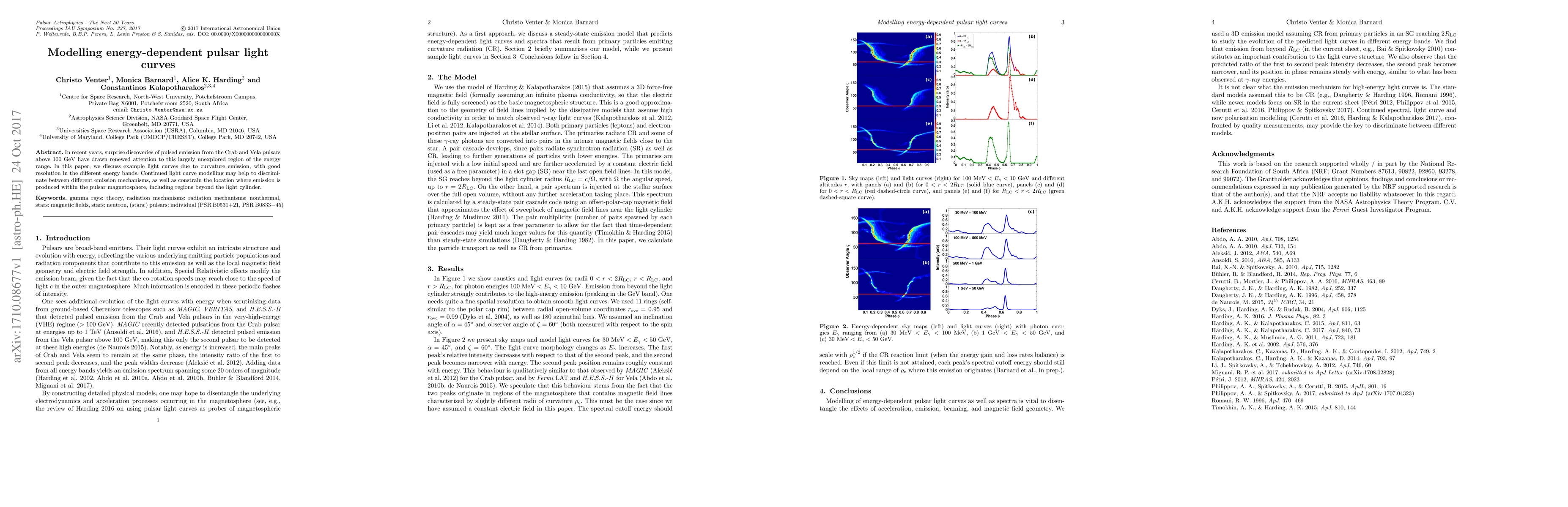 In recent years, surprise discoveries of pulsed emission from the Crab and Vela pulsars above 100 GeV have drawn renewed attention to this largely unexplored region of the energy range. In this paper, we discuss example light curves due to curvature emission, with good resolution in the different energy bands. Continued light curve modelling may help to discriminate between different emission mechanisms, as well as constrain the location where emission is produced within the pulsar magnetosphere, including regions beyond the light cylinder.