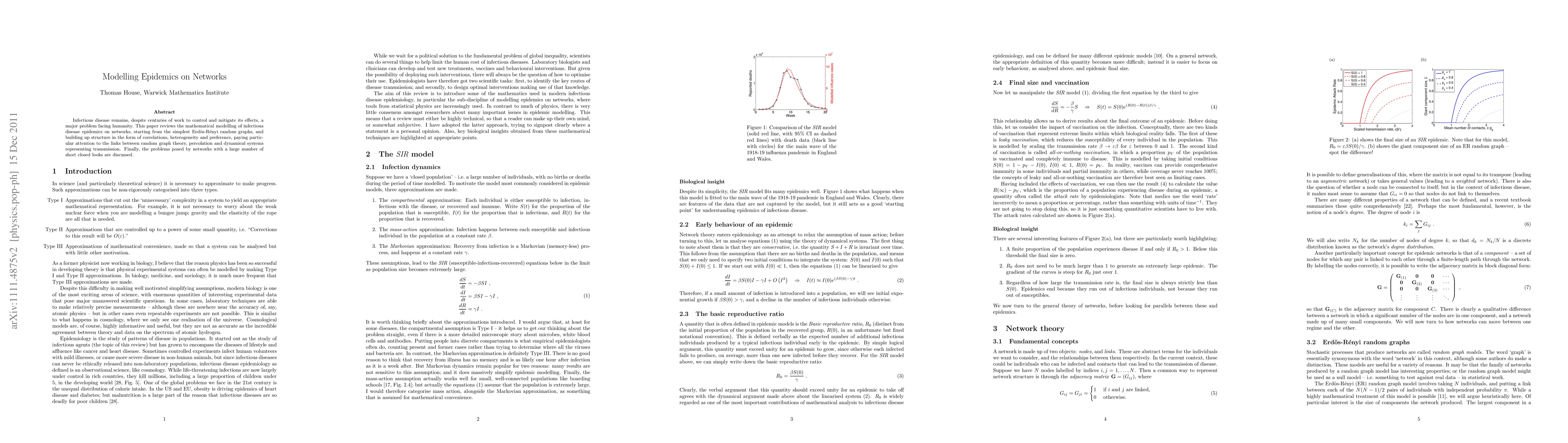 This paper models infectious disease epidemics on networks, exploring how structure affects transmission rates and outcomes. It discusses key findings, methods, and implications for understanding and controlling diseases in complex systems.