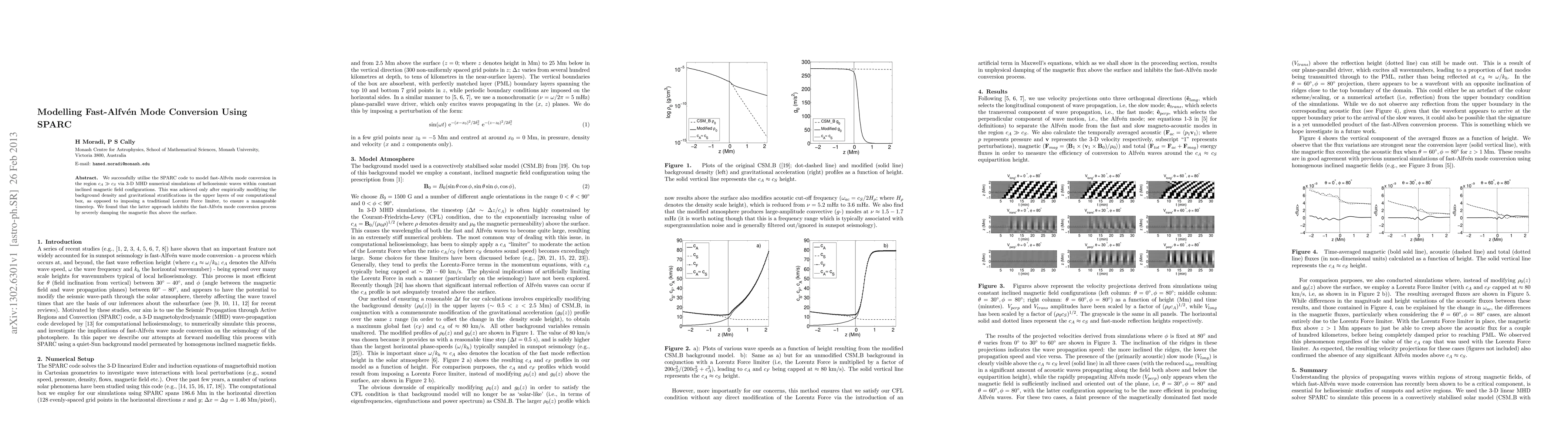 Researchers successfully modeled fast-Alfvén mode conversion in 3D MHD simulations using SPARC code, modifying density and stratifications to prevent timestep limitations.