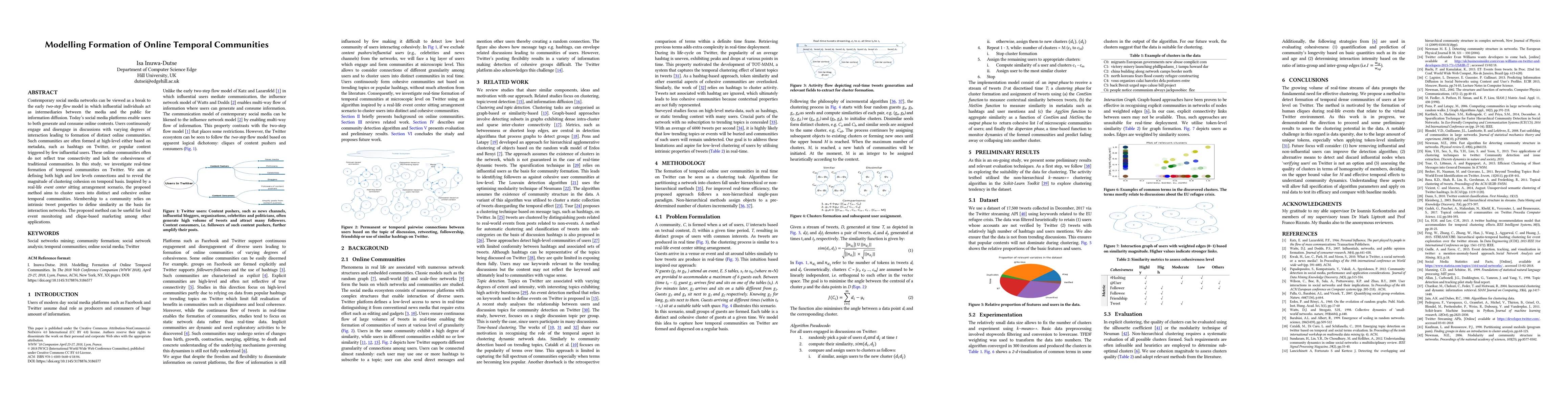 This study investigates the real-time formation of temporal communities on Twitter, focusing on clustering users into cohesive groups based on intrinsic tweet properties. The proposed method aims to reveal the magnitude of clustering cohesion and can be useful for local event monitoring and targeted marketing.