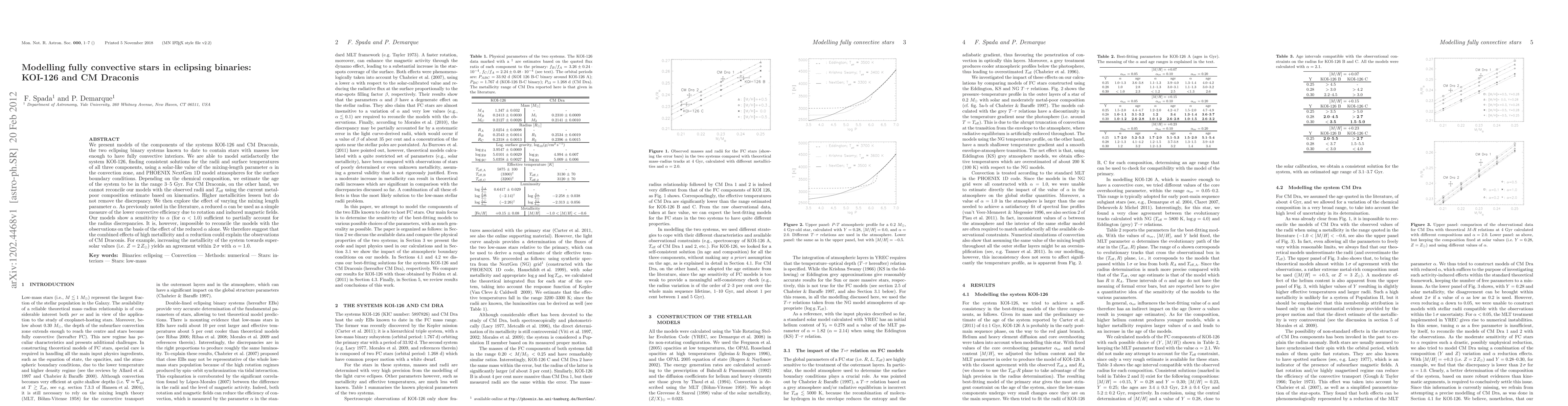 Researchers model two eclipsing binary systems with fully convective stars, finding consistent solutions for KOI-126 but not CM Draconis due to metallicity discrepancies, which may be explained by reduced mixing length parameter α.