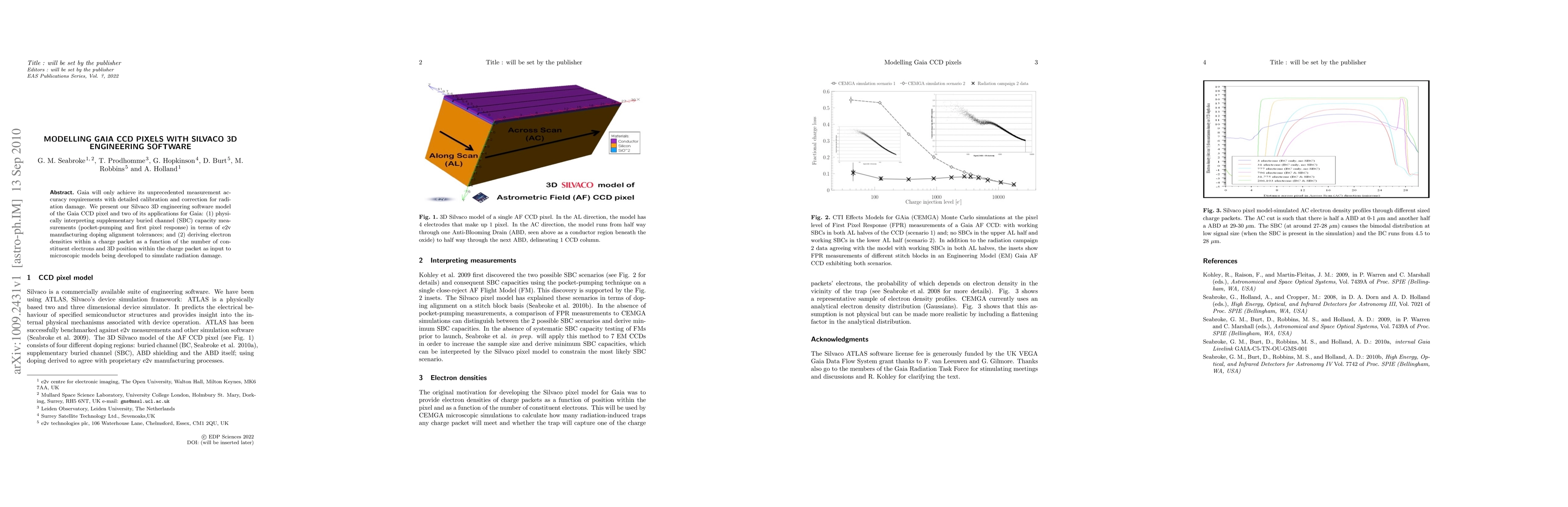 Gaia will only achieve its unprecedented measurement accuracy requirements with detailed calibration and correction for radiation damage. We present our Silvaco 3D engineering software model of the Gaia CCD pixel and two of its applications for Gaia: (1) physically interpreting supplementary buried channel (SBC) capacity measurements (pocket-pumping and first pixel response) in terms of e2v manufacturing doping alignment tolerances; and (2) deriving electron densities within a charge packet as a function of the number of constituent electrons and 3D position within the charge packet as input to microscopic models being developed to simulate radiation damage.