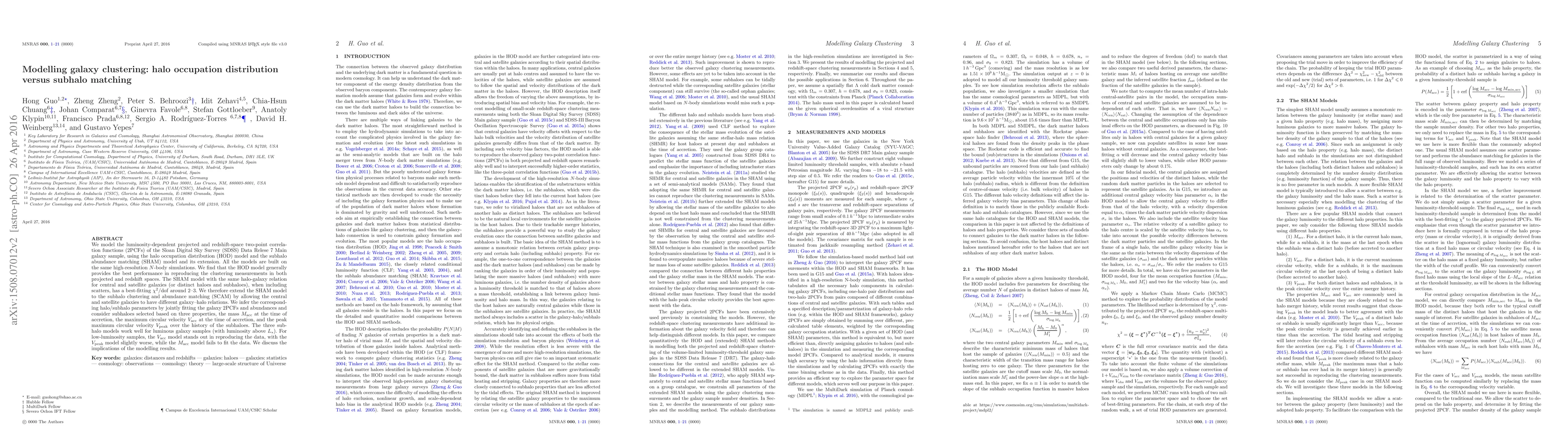 This paper compares the performance of halo occupation distribution (HOD) and subhalo abundance matching (SHAM) models in modeling galaxy clustering from the SDSS DR7 Main galaxy sample. The HOD model generally provides better agreement with observed clustering measurements. The extended SHAM model, now called subhalo clustering and abundance matching (SCAM), allows central and satellite galaxies to have different galaxy-halo relations, showing better performance for luminous galaxies, with the $V_{\rm acc}$ model particularly effective for low-luminosity samples.
