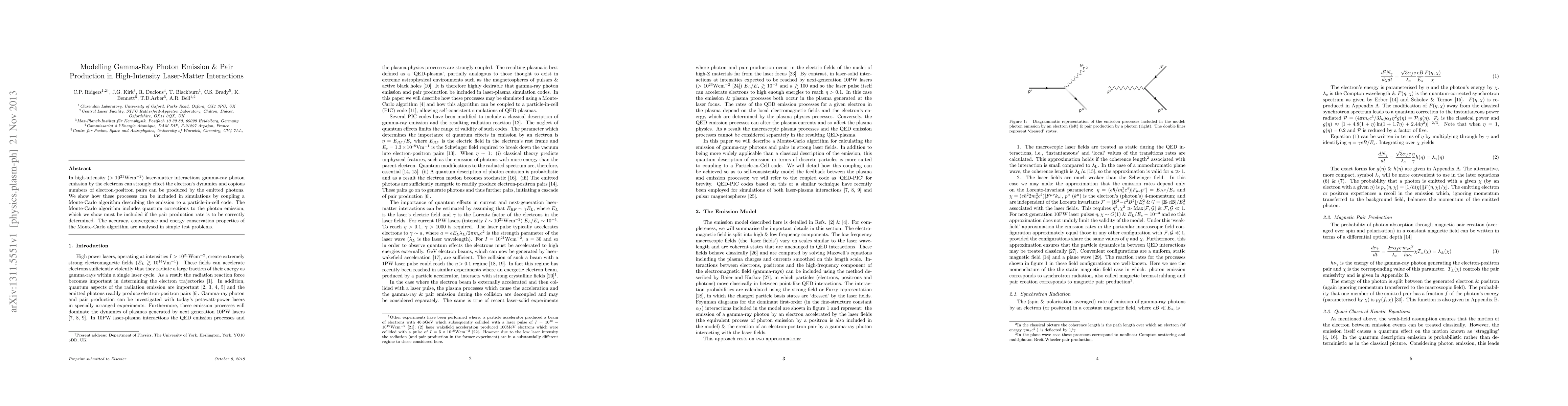 This paper models gamma-ray emission and pair production in high-intensity laser-matter interactions using a Monte-Carlo algorithm coupled with a particle-in-cell code, emphasizing the necessity of quantum corrections for accurate pair production rates. The method's accuracy and energy conservation are validated through test simulations.