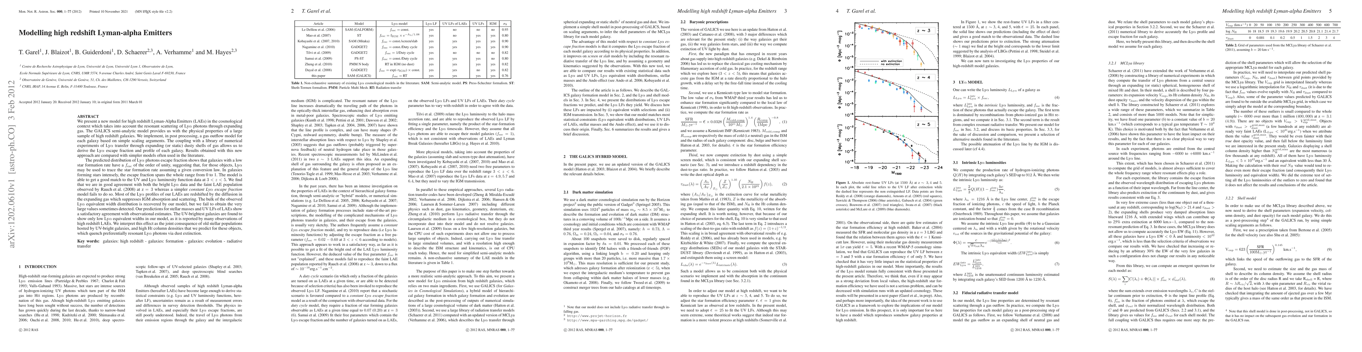 A new model predicts that Lyman-alpha emitters at high redshifts can have a variable escape fraction, with low star formation rate galaxies having nearly full escape, while intensely forming galaxies have zero escape. The model successfully reproduces the UV and Ly-alpha luminosity function data and provides predictions for stellar masses and UV LFs.