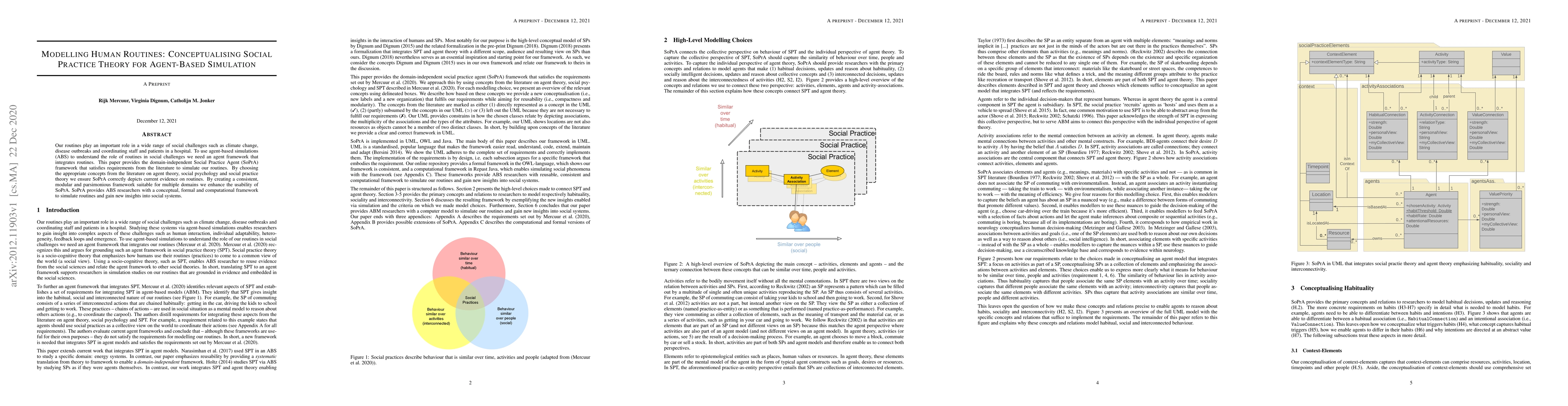 This paper introduces the Social Practice Agent (SoPrA) framework to simulate human routines within agent-based simulations, integrating concepts from social psychology and practice theory. SoPrA aims to enhance understanding of social challenges like climate change and hospital coordination by providing a consistent, modular, and parsimonious model for simulating routines.