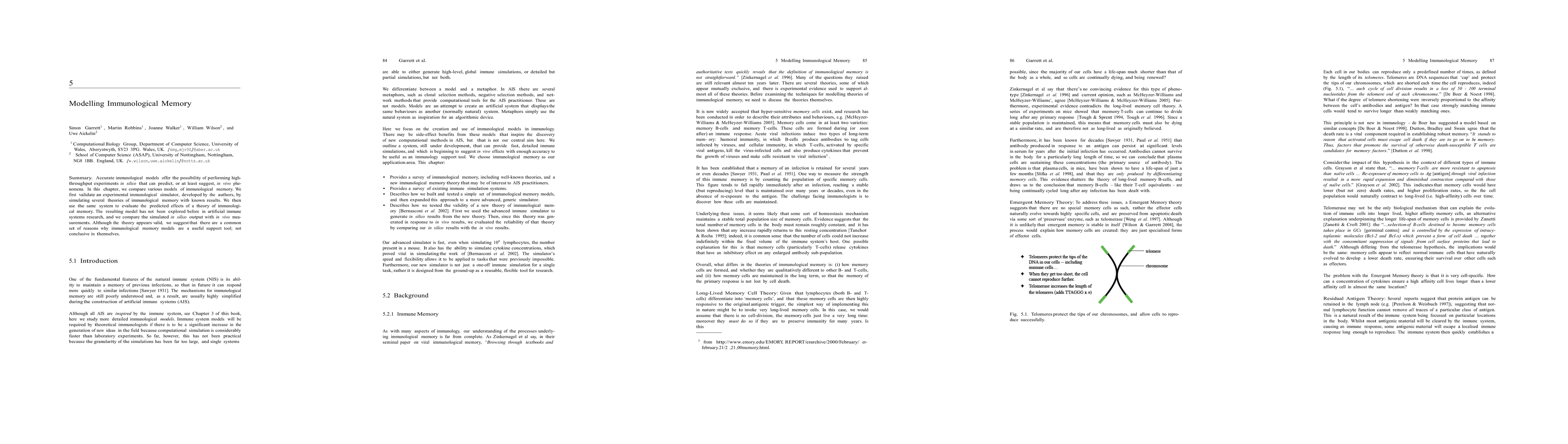 Accurate immunological models offer the possibility of performing highthroughput experiments in silico that can predict, or at least suggest, in vivo phenomena. In this chapter, we compare various models of immunological memory. We first validate an experimental immunological simulator, developed by the authors, by simulating several theories of immunological memory with known results. We then use the same system to evaluate the predicted effects of a theory of immunological memory. The resulting model has not been explored before in artificial immune systems research, and we compare the simulated in silico output with in vivo measurements. Although the theory appears valid, we suggest that there are a common set of reasons why immunological memory models are a useful support tool; not conclusive in themselves.