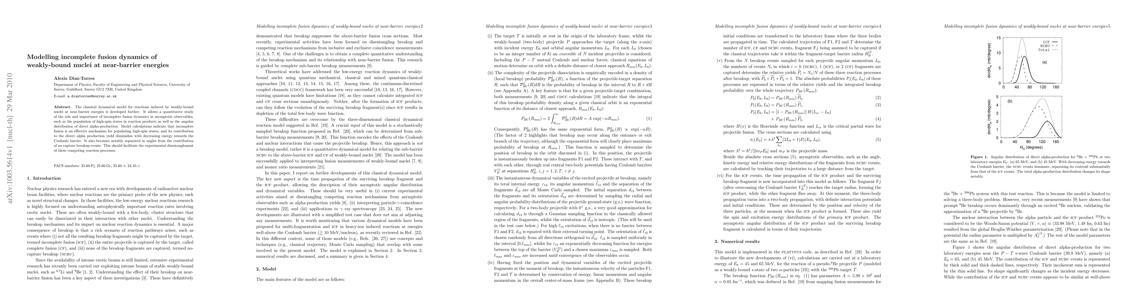 The classical dynamical model for reactions induced by weakly-bound nuclei at near-barrier energies is developed further. It allows a quantitative study of the role and importance of incomplete fusion dynamics in asymptotic observables, such as the population of high-spin states in reaction products as well as the angular distribution of direct alpha-production. Model calculations indicate that incomplete fusion is an effective mechanism for populating high-spin states, and its contribution to the direct alpha production yield diminishes with decreasing energy towards the Coulomb barrier. It also becomes notably separated in angles from the contribution of no-capture breakup events. This should facilitate the experimental disentanglement of these competing reaction processes.