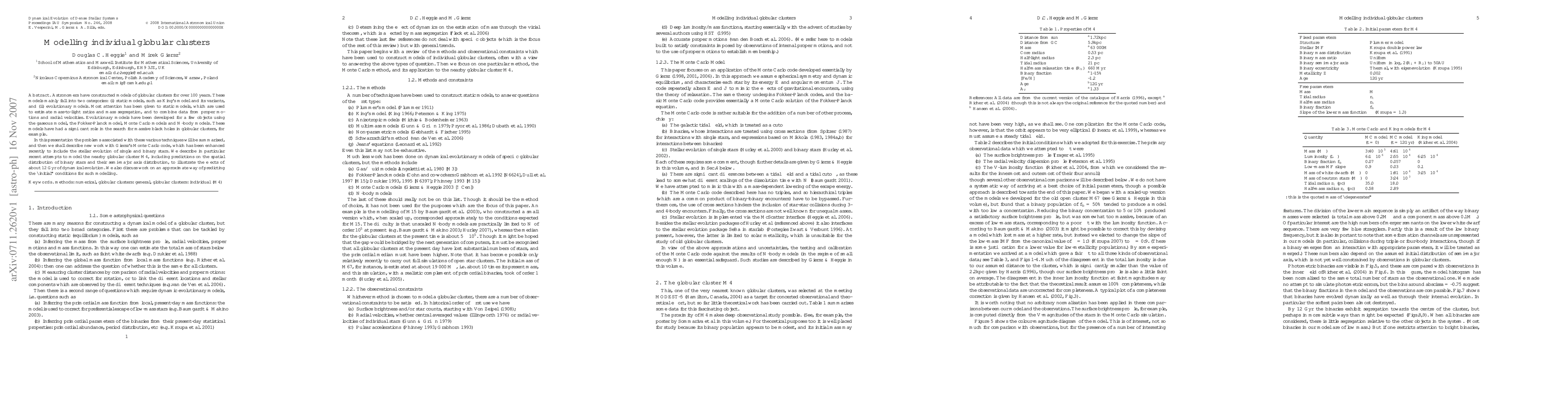 Astronomers have constructed models of globular clusters for over 100 years. These models mainly fall into two categories: (i) static models, such as King's model and its variants, and (ii) evolutionary models. Most attention has been given to static models, which are used to estimate mass-to-light ratios and mass segregation, and to combine data from proper motions and radial velocities. Evolutionary models have been developed for a few objects using the gaseous model, the Fokker-Planck model, Monte Carlo models and N-body models. These models have had a significant role in the search for massive black holes in globular clusters, for example. In this presentation the problems associated with these various techniques will be summarised, and then we shall describe new work with Giersz's Monte Carlo code, which has been enhanced recently to include the stellar evolution of single and binary stars. We describe in particular recent attempts to model the nearby globular cluster M4, including predictions on the spatial distribution of binary stars and their semi-major axis distribution, to illustrate the effects of about 12 Gyr of dynamical evolution. We also discuss work on an approximate way of predicting the "initial" conditions for such modelling.