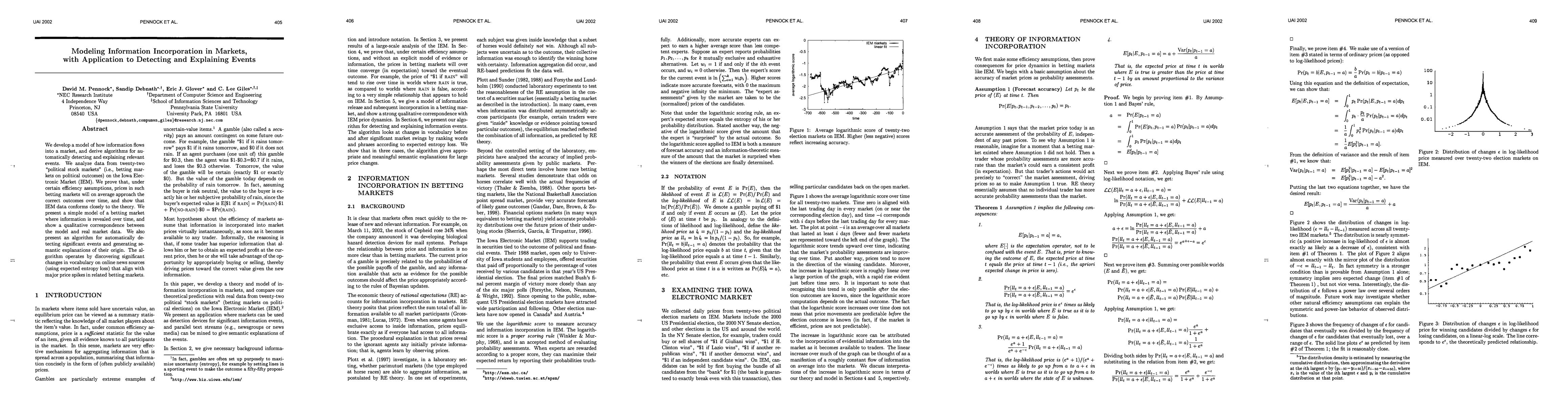We develop a model of how information flows into a market, and derive algorithms for automatically detecting and explaining relevant events. We analyze data from twenty-two "political stock markets" (i.e., betting markets on political outcomes) on the Iowa Electronic Market (IEM). We prove that, under certain efficiency assumptions, prices in such betting markets will on average approach the correct outcomes over time, and show that IEM data conforms closely to the theory. We present a simple model of a betting market where information is revealed over time, and show a qualitative correspondence between the model and real market data. We also present an algorithm for automatically detecting significant events and generating semantic explanations of their origin. The algorithm operates by discovering significant changes in vocabulary on online news sources (using expected entropy loss) that align with major price spikes in related betting markets.