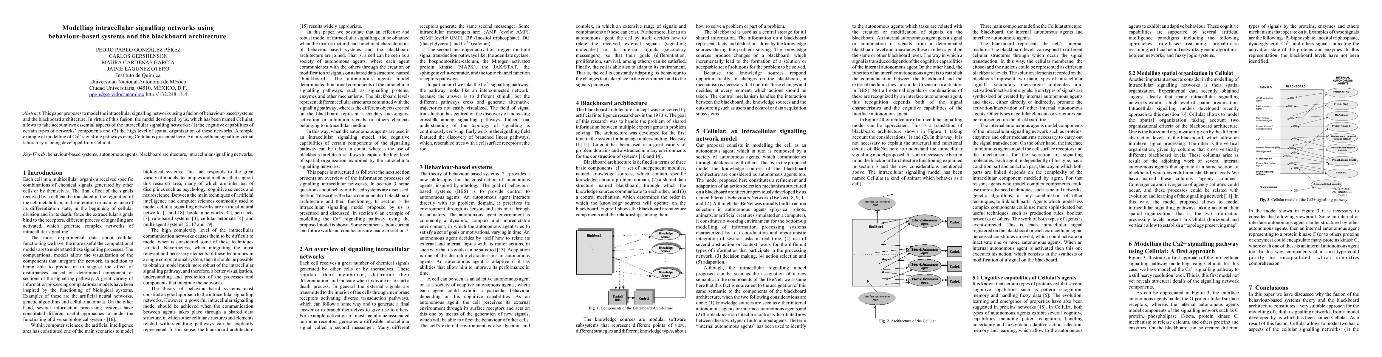This paper proposes to model the intracellular signalling networks using a fusion of behaviour-based systems and the blackboard architecture. In virtue of this fusion, the model developed by us, which has been named Cellulat, allows to take account two essential aspects of the intracellular signalling networks: (1) the cognitive capabilities of certain types of networks' components and (2) the high level of spatial organization of these networks. A simple example of modelling of Ca2+ signalling pathways using Cellulat is presented here. An intracellular signalling virtual laboratory is being developed from Cellulat.