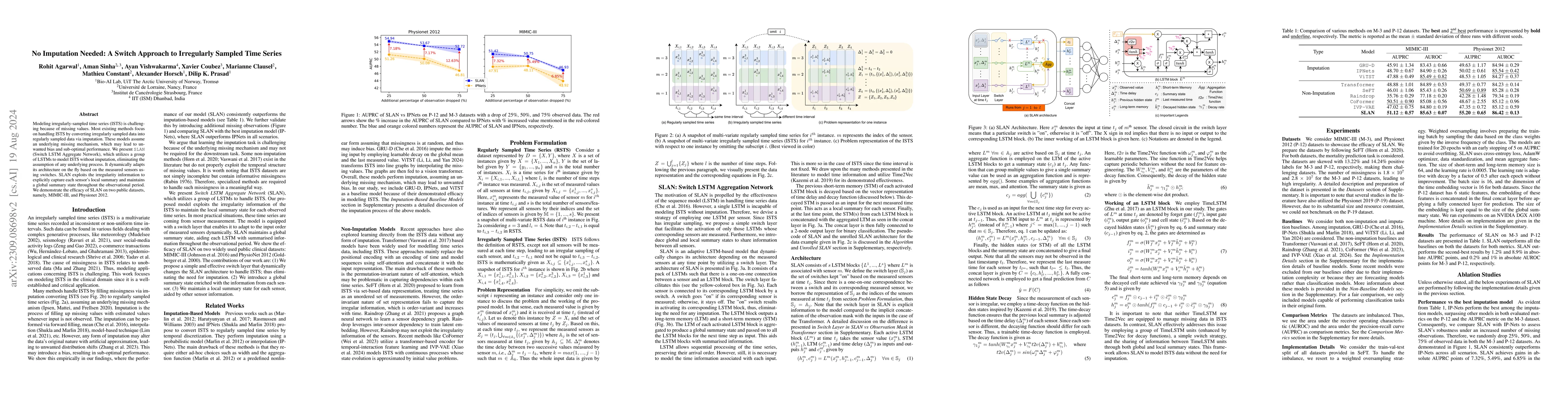 This paper introduces SLAN, a Switch LSTM Aggregate Network for modelling irregularly sampled time series without imputation, addressing the bias and sub-optimal performance of existing imputation-based methods. SLAN dynamically adapts its architecture based on sensor data, capturing local and global summaries without assuming an underlying missing mechanism.