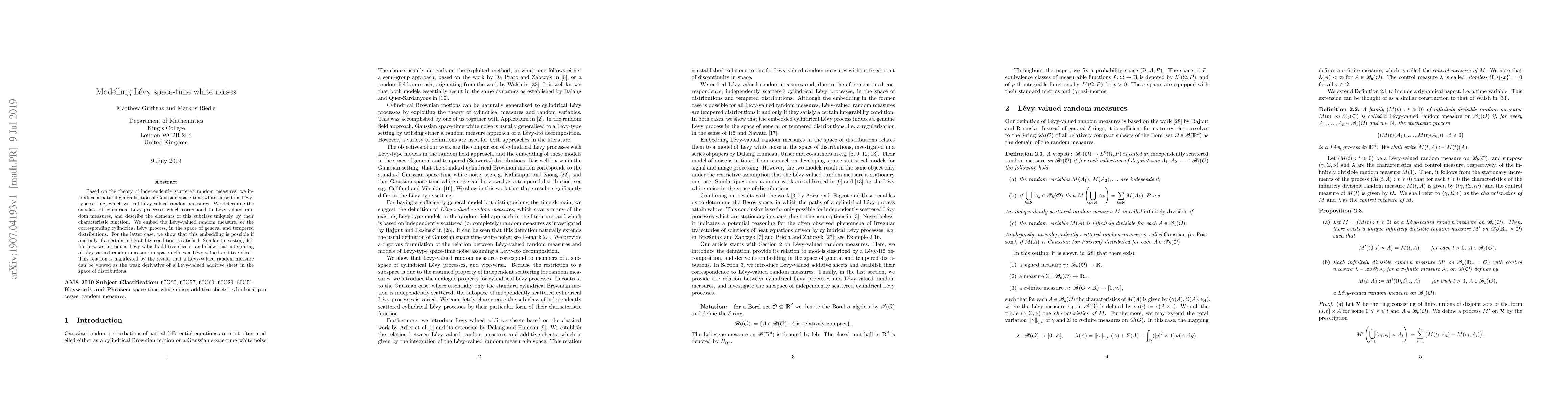 Based on the theory of independently scattered random measures, we introduce a natural generalisation of Gaussian space-time white noise to a Levy-type setting, which we call Levy-valued random measures. We determine the subclass of cylindrical Levy processes which correspond to Levy-valued random measures, and describe the elements of this subclass uniquely by their characteristic function. We embed the Levy-valued random measure, or the corresponding cylindrical Levy process, in the space of general and tempered distributions. For the latter case, we show that this embedding is possible if and only if a certain integrability condition is satisfied. Similar to existing definitions, we introduce Levy-valued additive sheets, and show that integrating a Levy-valued random measure in space defines a Levy-valued additive sheet. This relation is manifested by the result, that a Levy-valued random measure can be viewed as the weak derivative of a Levy-valued additive sheet in the space of distributions.