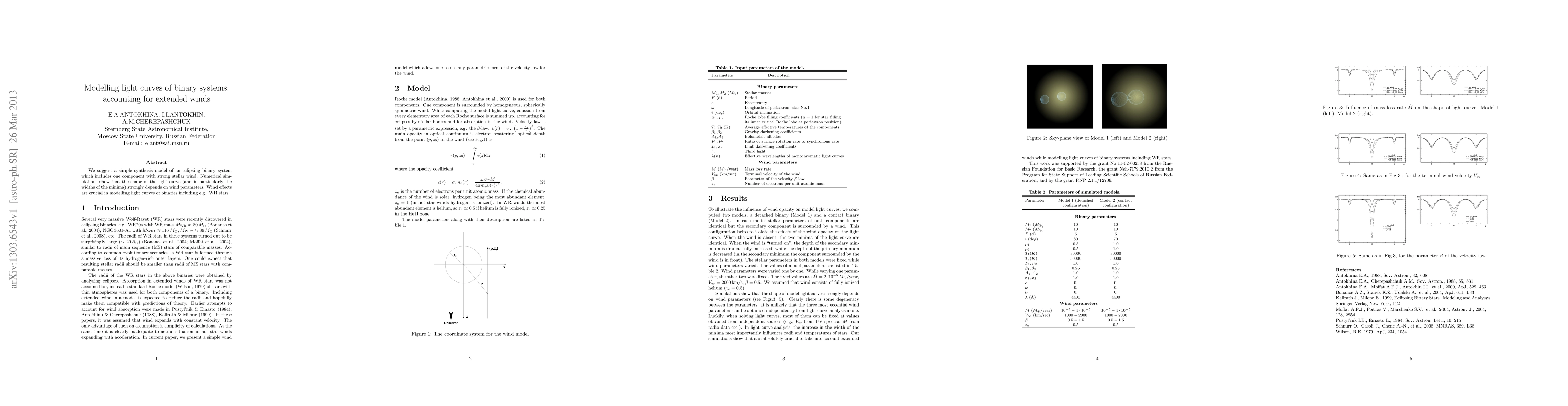 This paper proposes a synthesis model for eclipsing binary systems with one component having a strong stellar wind, demonstrating that wind parameters significantly affect light curve shapes, especially the widths of the minima. Accurate modelling of such systems, like those involving Wolf-Rayet stars, requires accounting for these wind effects.