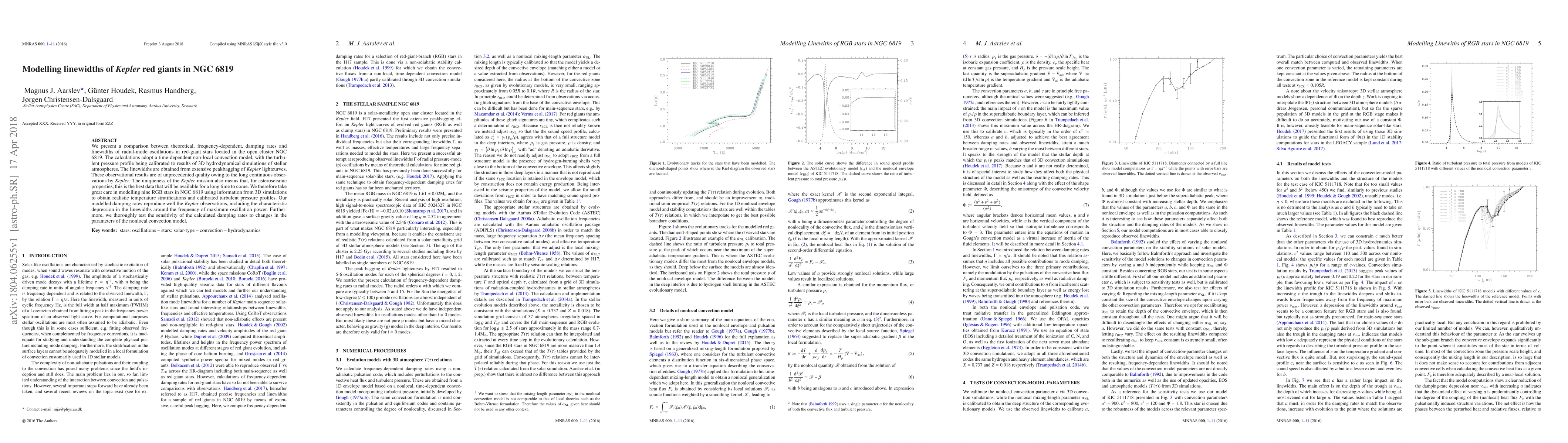 This paper compares theoretical damping rates and linewidths of radial-mode oscillations in red-giant stars in NGC 6819 with high-quality Kepler observations, showing good agreement and testing the sensitivity of the non-local convection model used. The study leverages 3D hydrodynamical simulations to calibrate the model.