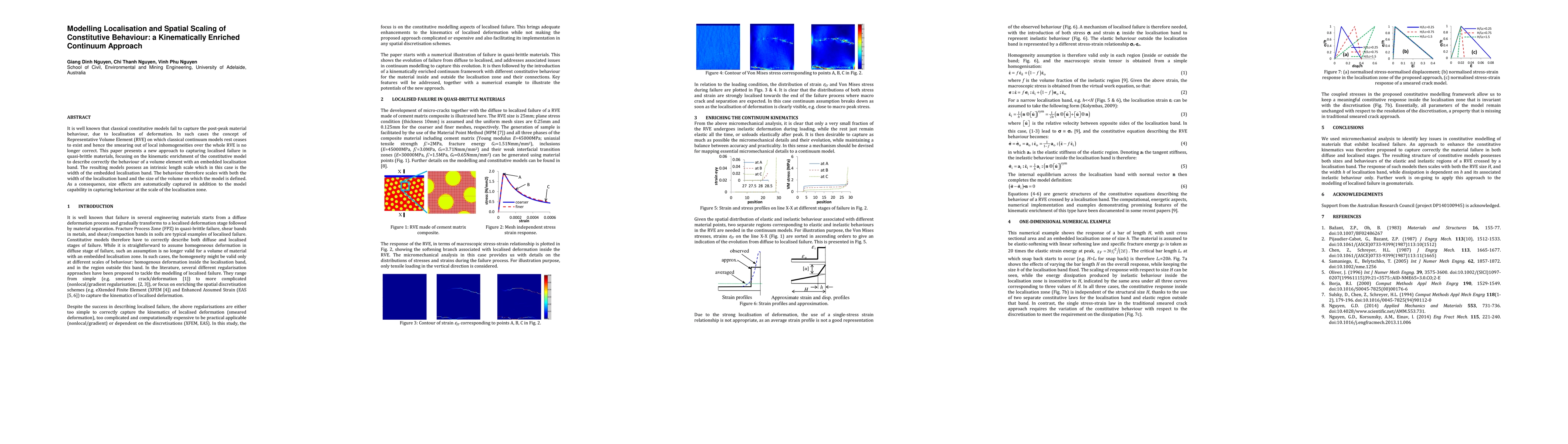 It is well known that classical constitutive models fail to capture the post-peak material behaviour, due to localisation of deformation. In such cases the concept of Representative Volume Element (RVE) on which classical continuum models rest ceases to exist and hence the smearing out of local inhomogeneities over the whole RVE is no longer correct. This paper presents a new approach to capturing localised failure in quasi-brittle materials, focusing on the kinematic enrichment of the constitutive model to describe correctly the behaviour of a volume element with an embedded localisation band. The resulting models possess an intrinsic length scale which in this case is the width of the embedded localisation band. The behaviour therefore scales with both the width of the localisation band and the size of the volume on which the model is defined. As a consequence, size effects are automatically captured in addition to the model capability in capturing behaviour at the scale of the localisation zone.