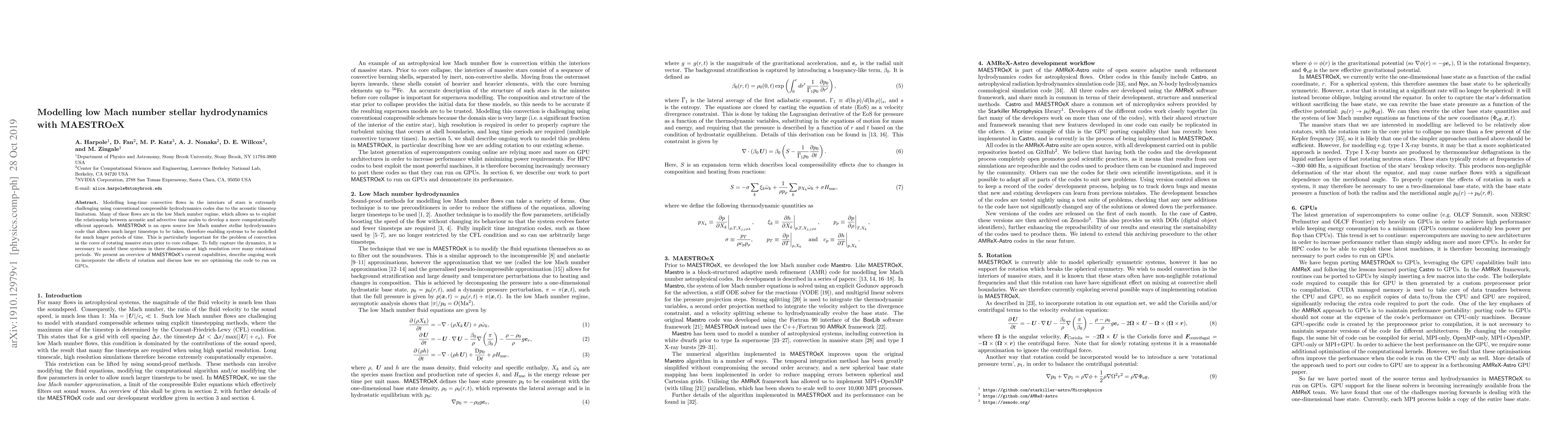 Modelling long-time convective flows in the interiors of stars is extremely challenging using conventional compressible hydrodynamics codes due to the acoustic timestep limitation. Many of these flows are in the low Mach number regime, which allows us to exploit the relationship between acoustic and advective time scales to develop a more computationally efficient approach. MAESTROeX is an open source low Mach number stellar hydrodynamics code that allows much larger timesteps to be taken, therefore enabling systems to be modelled for much longer periods of time. This is particularly important for the problem of convection in the cores of rotating massive stars prior to core collapse. To fully capture the dynamics, it is necessary to model these systems in three dimensions at high resolution over many rotational periods. We present an overview of MAESTROeX's current capabilities, describe ongoing work to incorporate the effects of rotation and discuss how we are optimising the code to run on GPUs.