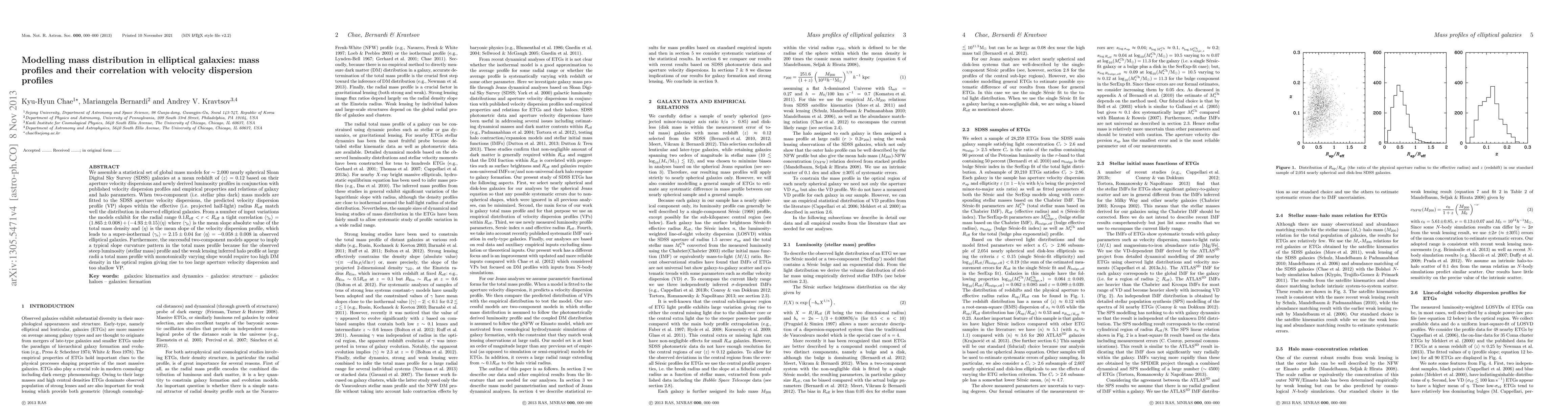 This paper develops a statistical set of mass models for nearly spherical SDSS galaxies, showing that two-component mass models (stellar plus dark matter) accurately reproduce observed velocity dispersion profiles in elliptical galaxies. The study finds a tight correlation between the mean slope of the total mass density and the velocity dispersion profile, indicating a super-isothermal mass distribution.