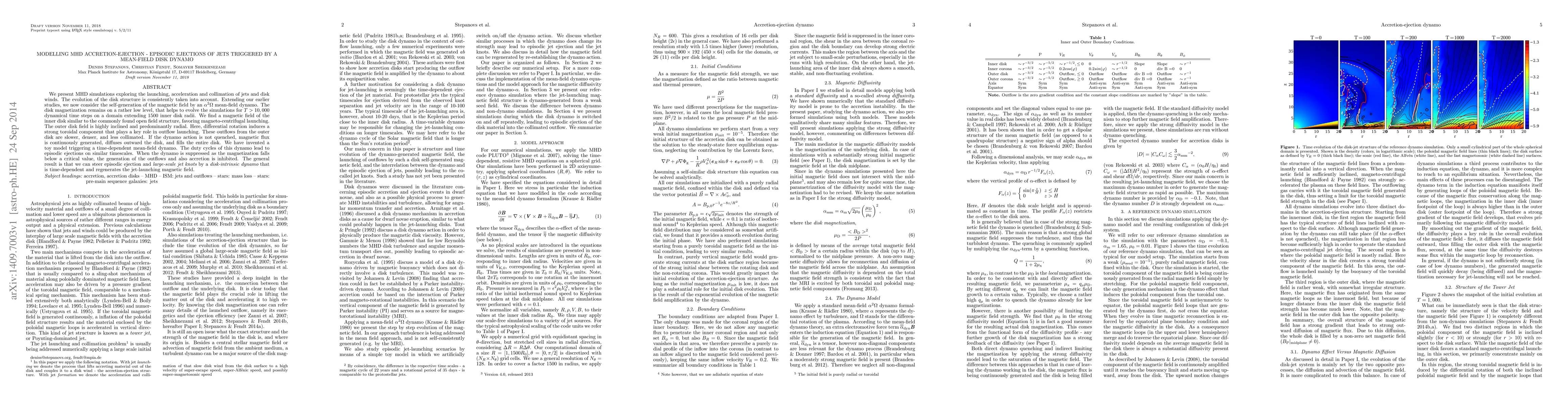 This paper explores MHD simulations of jet and wind dynamics in accretion disks, emphasizing the role of a self-generated mean-field dynamo. The study finds that episodic ejections are triggered by a time-dependent dynamo, which regenerates the magnetic field necessary for jet launching, leading to large-scale jet knots.