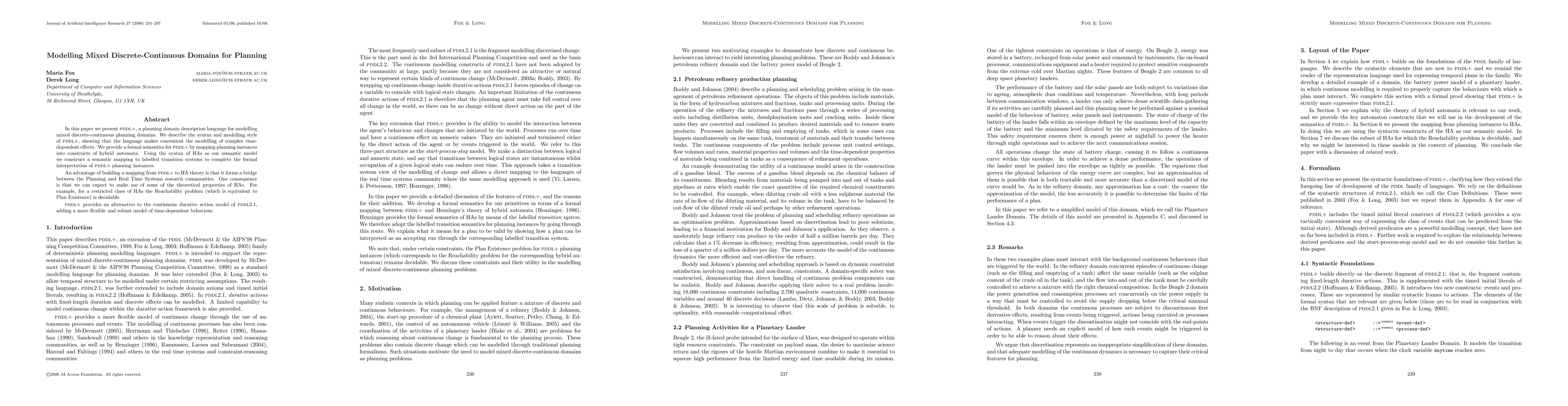 This paper introduces pddl+, a new planning domain description language for mixed discrete-continuous planning domains, providing a formal semantics through mapping to hybrid automata. It bridges the Planning and Real Time Systems research communities, offering a more flexible model for time-dependent effects compared to pddl2.1.