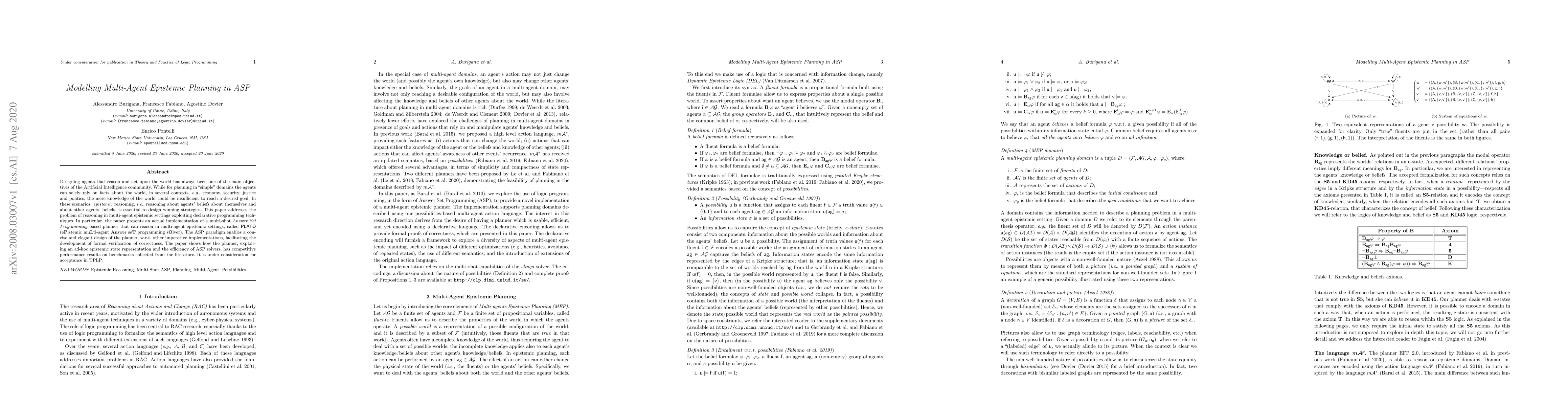 The paper introduces PLATO, a multi-shot ASP planner for multi-agent epistemic settings, which utilizes an elegant ASP-based representation and formal verification techniques.