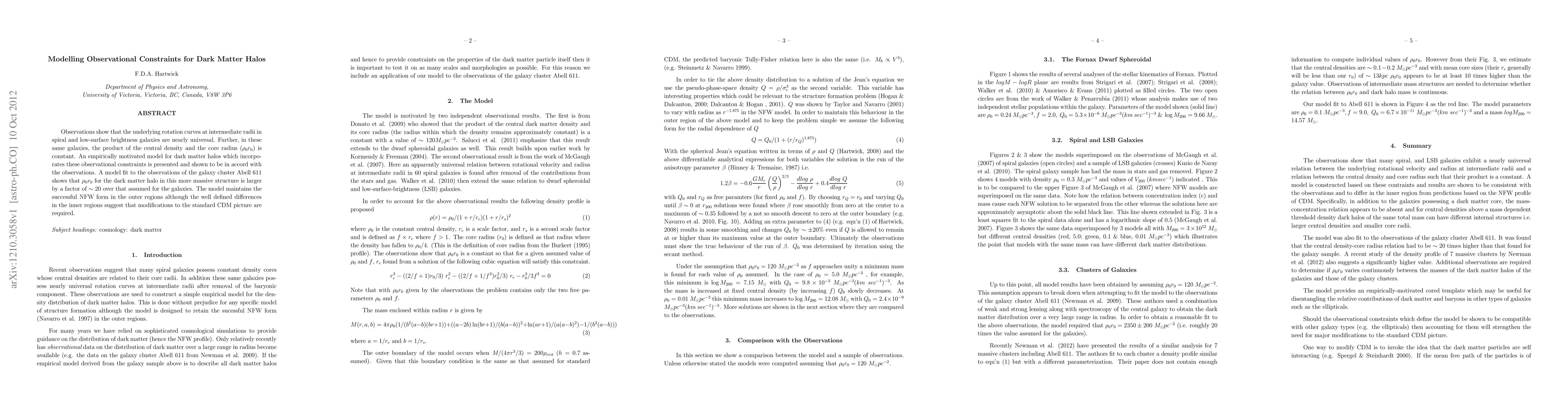 A new model of dark matter halos incorporates universal observational constraints found in galaxy rotation curves and density profiles, revealing a larger core radius for galaxy clusters compared to smaller galaxies.