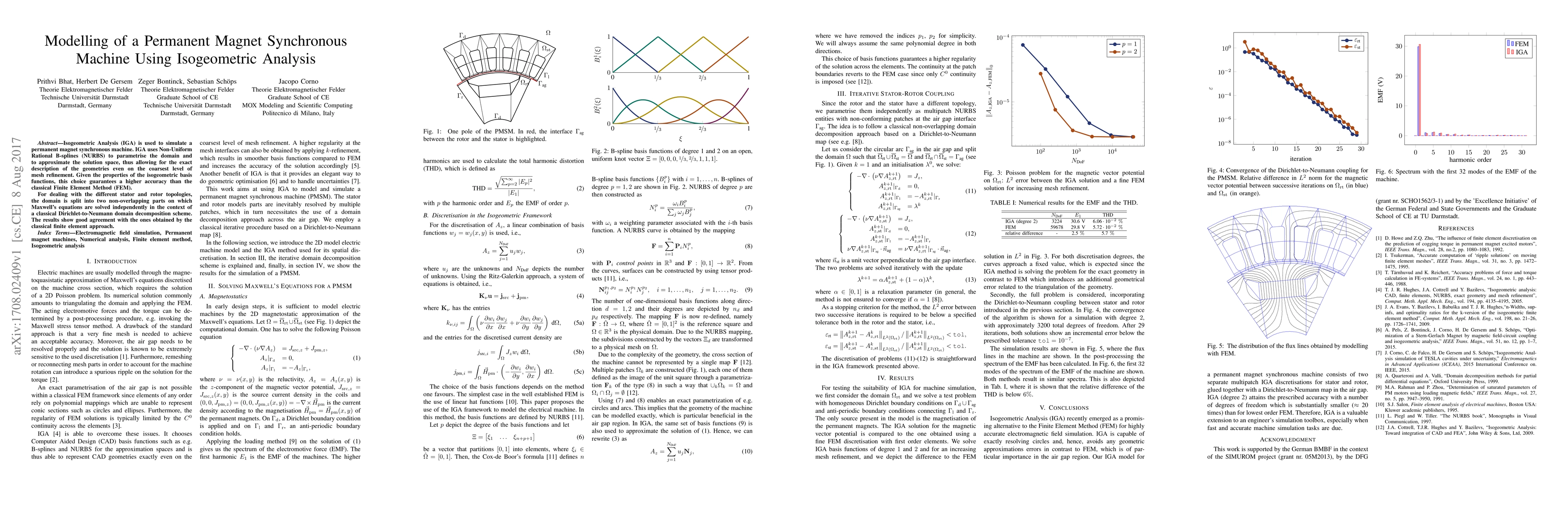 This paper employs isogeometric analysis (IGA) to model a permanent magnet synchronous machine, leveraging non-uniform rational B-splines for geometry representation and solution approximation. The study demonstrates higher accuracy compared to the classical finite element method and validates results through a Dirichlet-to-Neumann domain decomposition scheme.