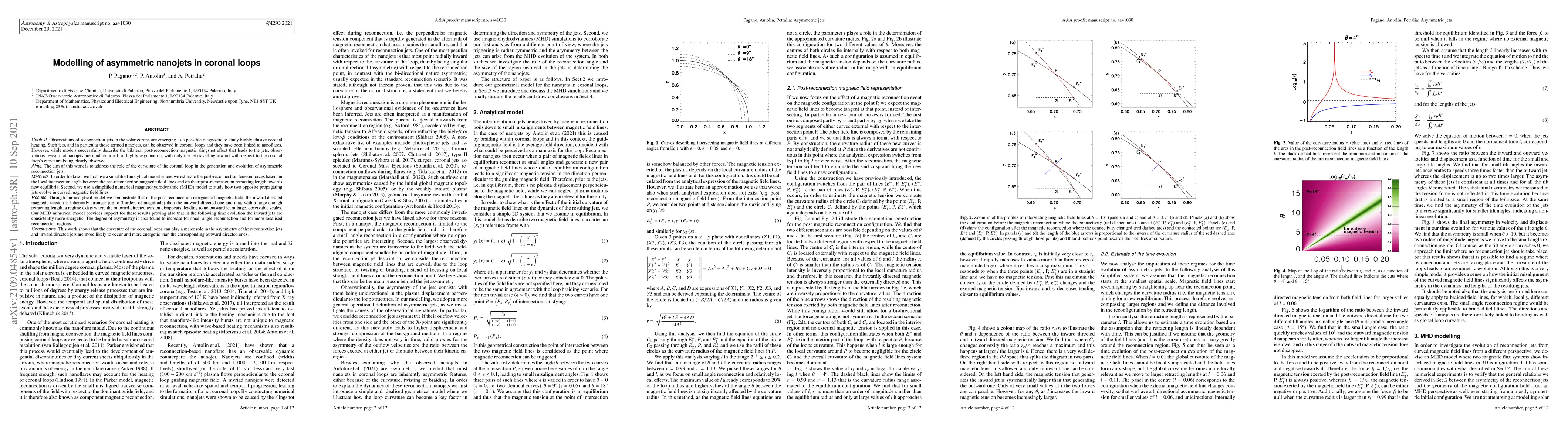 This research explores the role of coronal loop curvature in the asymmetry of nanojets observed in solar corona reconnection events. Using both analytical and numerical models, it demonstrates that magnetic tension forces make inward jets stronger and more energetic, leading to observable unidirectional nanojets. The study implies that coronal loop curvature significantly influences jet directionality and energy distribution.