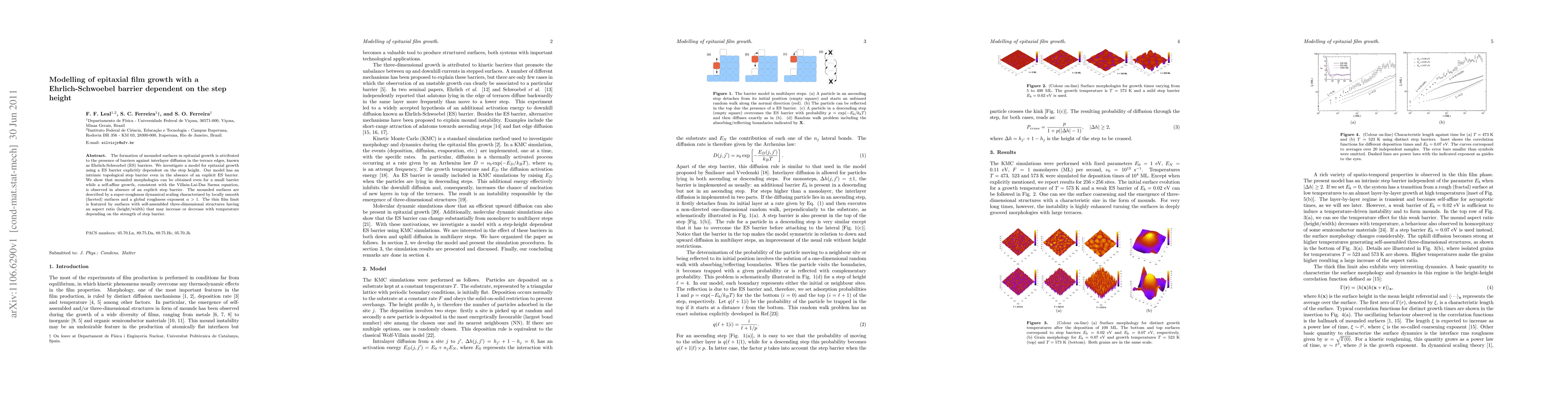 This paper models epitaxial film growth with an Ehrlich-Schwoebel barrier that varies with step height, showing that small barriers can create mounded surfaces while larger barriers lead to self-affine growth. The study reveals a super-roughness scaling for mounded morphologies and varying aspect ratios of self-assembled structures with temperature.