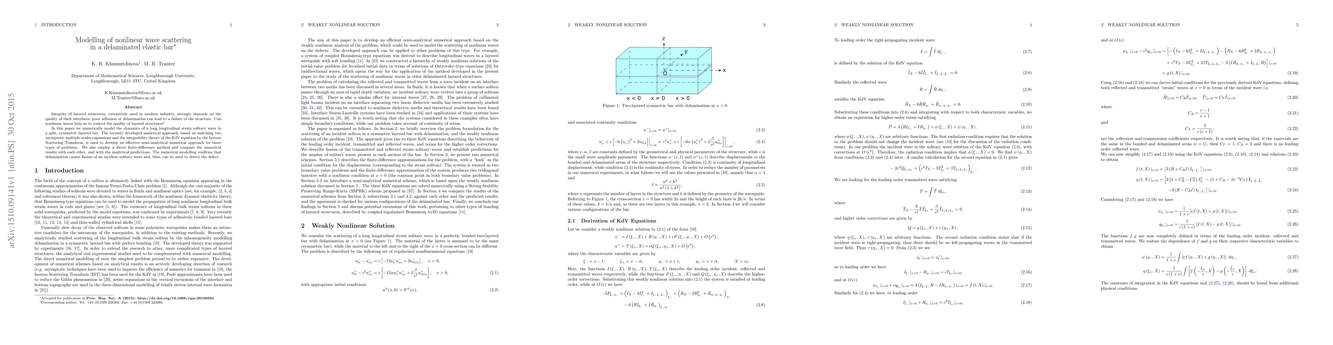 Researchers used a new numerical approach to model how nonlinear waves interact with delaminated structures, finding that delamination can detect defects by causing wave fission.