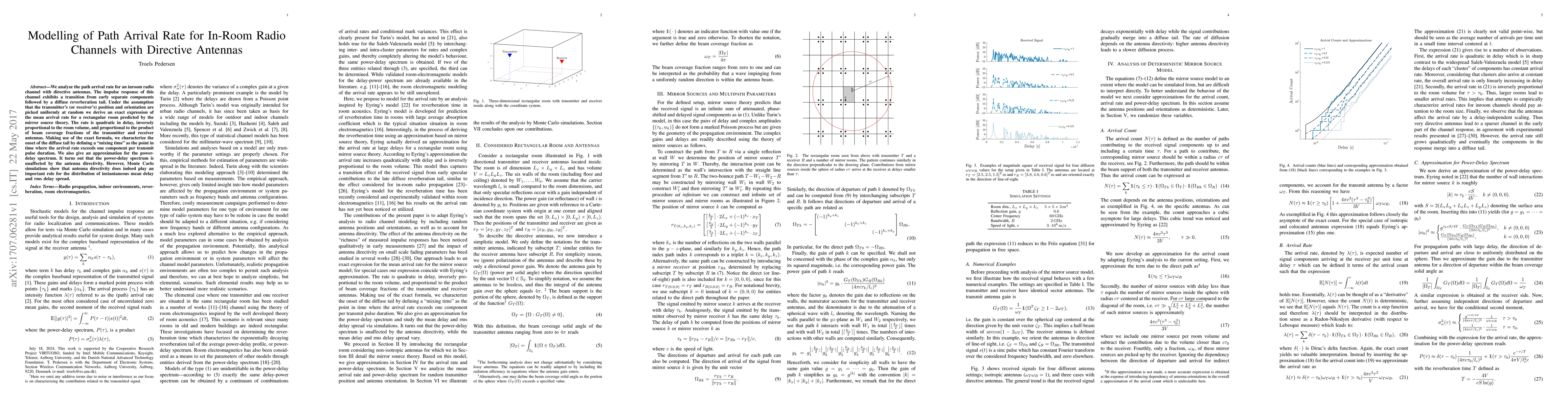 This paper models the path arrival rate for in-room radio channels using directive antennas, deriving an exact expression for the mean arrival rate based on mirror source theory. It finds that the rate is quadratic in delay and influenced by antenna beam coverage, while simulations reveal the impact of antenna directivity on delay distribution.