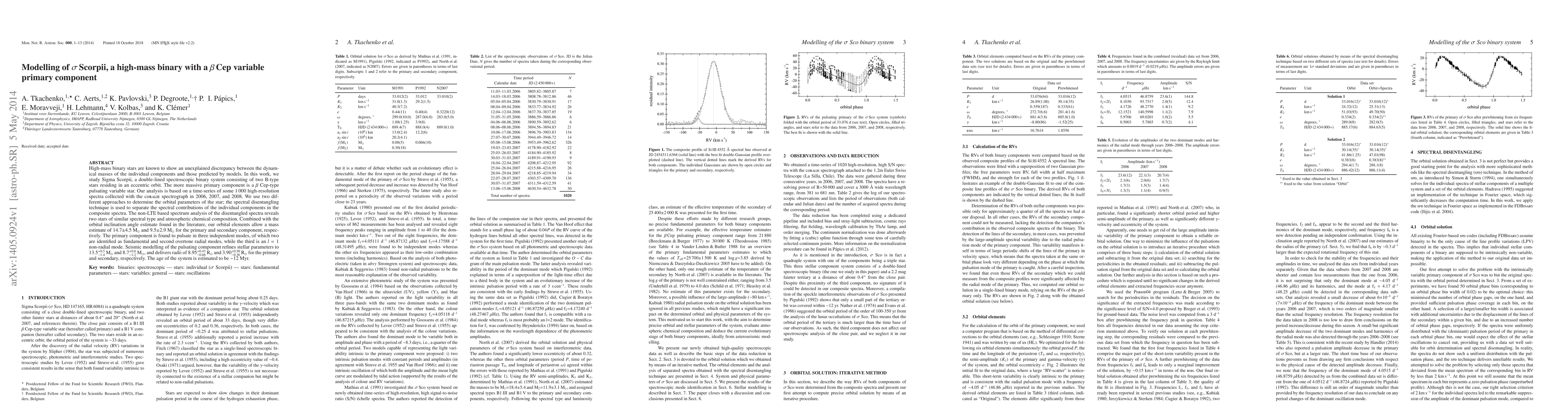 This study analyzes the high-mass binary star system Sigma Scorpii, using high-resolution spectra from 2006-2008. It employs spectral disentangling to separate the components' spectra, revealing two similar B-type stars. The primary, a Beta Cep pulsating variable, is found to have masses of 14.7±4.5 and 8.95±0.43 solar radii. Three pulsation modes are identified, and seismic modeling refines stellar parameters, estimating the system's age at ~12 million years, shedding light on mass discrepancies in high-mass binaries.