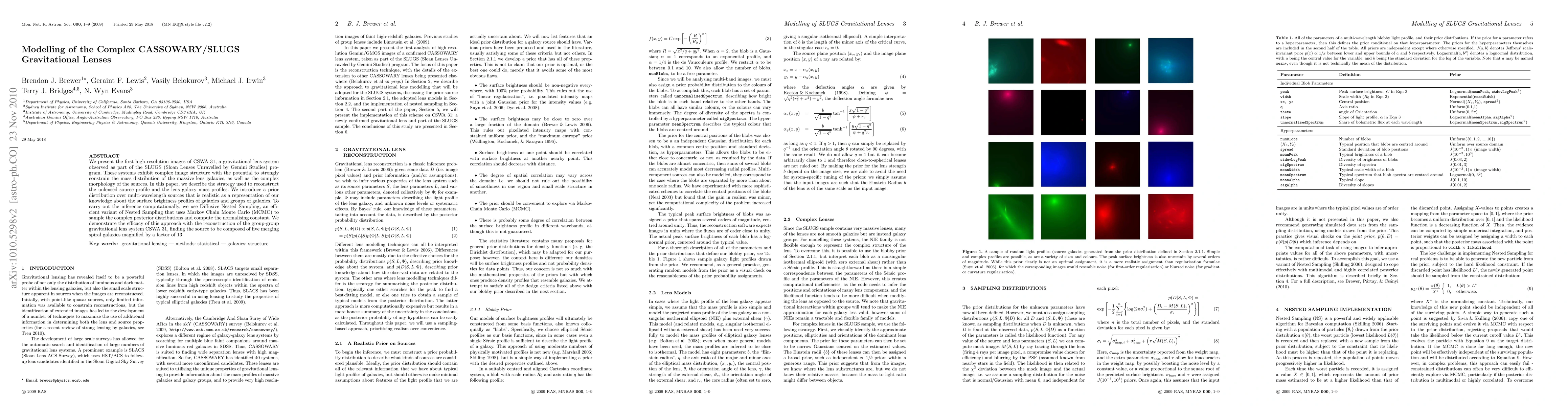 We present the first high-resolution images of CSWA 31, a gravitational lens system observed as part of the SLUGS (Sloan Lenses Unravelled by Gemini Studies) program. These systems exhibit complex image structure with the potential to strongly constrain the mass distribution of the massive lens galaxies, as well as the complex morphology of the sources. In this paper, we describe the strategy used to reconstruct the unlensed source profile and the lens galaxy mass profiles. We introduce a prior distribution over multi-wavelength sources that is realistic as a representation of our knowledge about the surface brightness profiles of galaxies and groups of galaxies. To carry out the inference computationally, we use Diffusive Nested Sampling, an efficient variant of Nested Sampling that uses Markov Chain Monte Carlo (MCMC) to sample the complex posterior distributions and compute the normalising constant. We demonstrate the efficacy of this approach with the reconstruction of the group-group gravitational lens system CSWA 31, finding the source to be composed of five merging spiral galaxies magnified by a factor of 13.