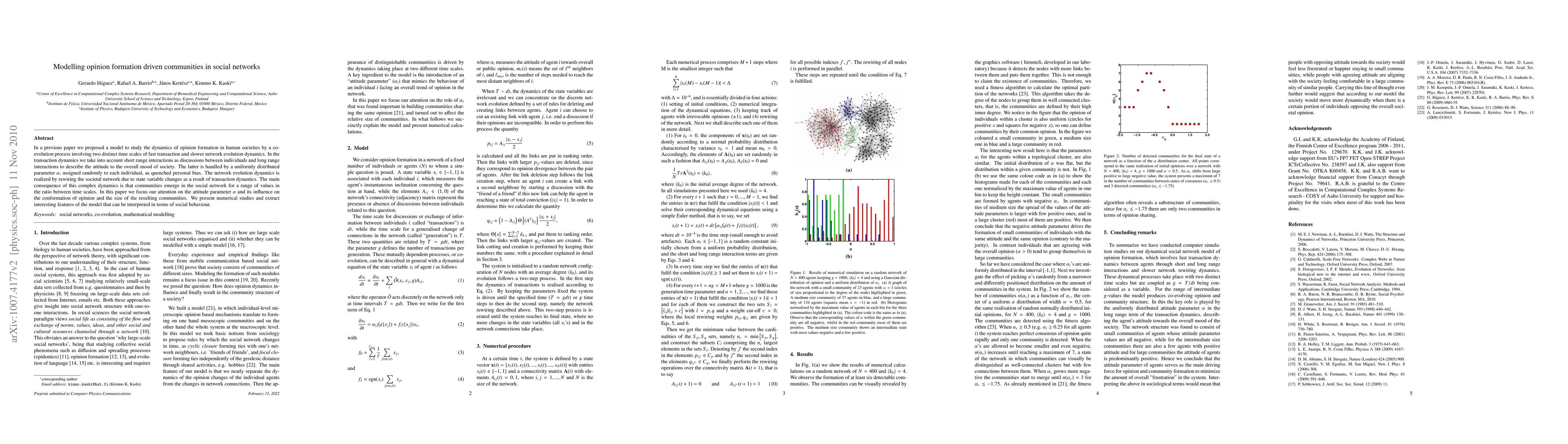 This paper models opinion formation in social networks through a co-evolution process with distinct fast transaction and slow network dynamics, focusing on how individual attitude parameter $\alpha$ influences opinion conformity and community size. Numerical studies reveal significant social behavior patterns emerging from the model.