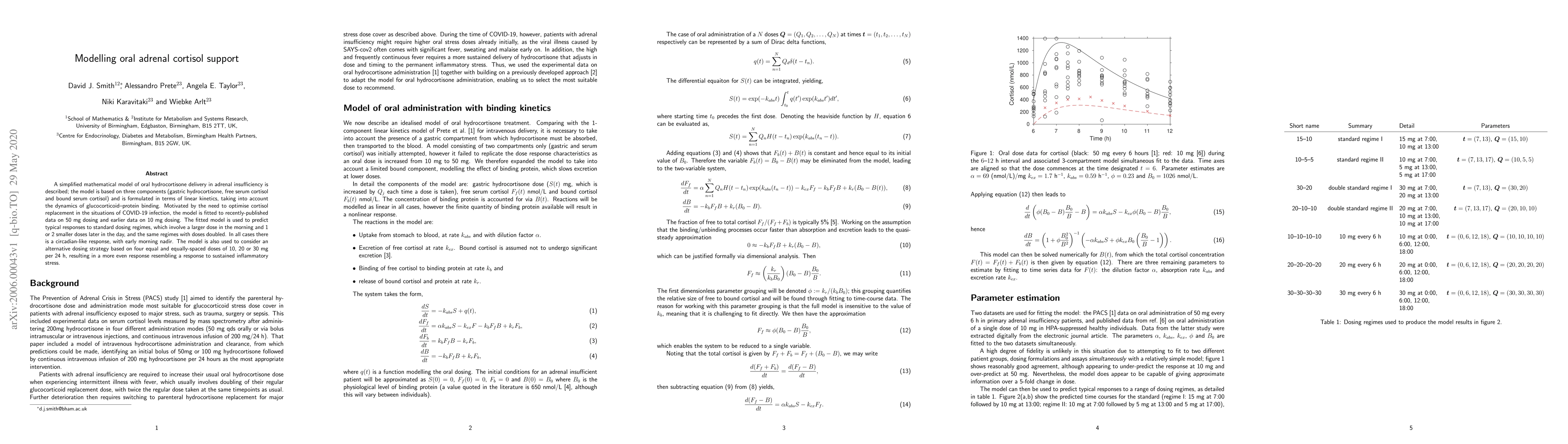 A simplified mathematical model of oral hydrocortisone delivery in adrenal insufficiency is described; the model is based on three components (gastric hydrocortisone, free serum cortisol and bound serum cortisol) and is formulated in terms of linear kinetics, taking into account the dynamics of glucocorticoid-protein binding. Motivated by the need to optimise cortisol replacement in the situations of COVID-19 infection, the model is fitted to recently-published data on 50 mg dosing and earlier data on 10 mg dosing. The fitted model is used to predict typical responses to standard dosing regimes, which involve a larger dose in the morning and 1 or 2 smaller doses later in the day, and the same regimes with doses doubled. In all cases there is a circadian-like response, with early morning nadir. The model is also used to consider an alternative dosing strategy based on four equal and equally-spaced doses of 10, 20 or 30 mg per 24 h, resulting in a more even response resembling a response to sustained inflammatory stress.