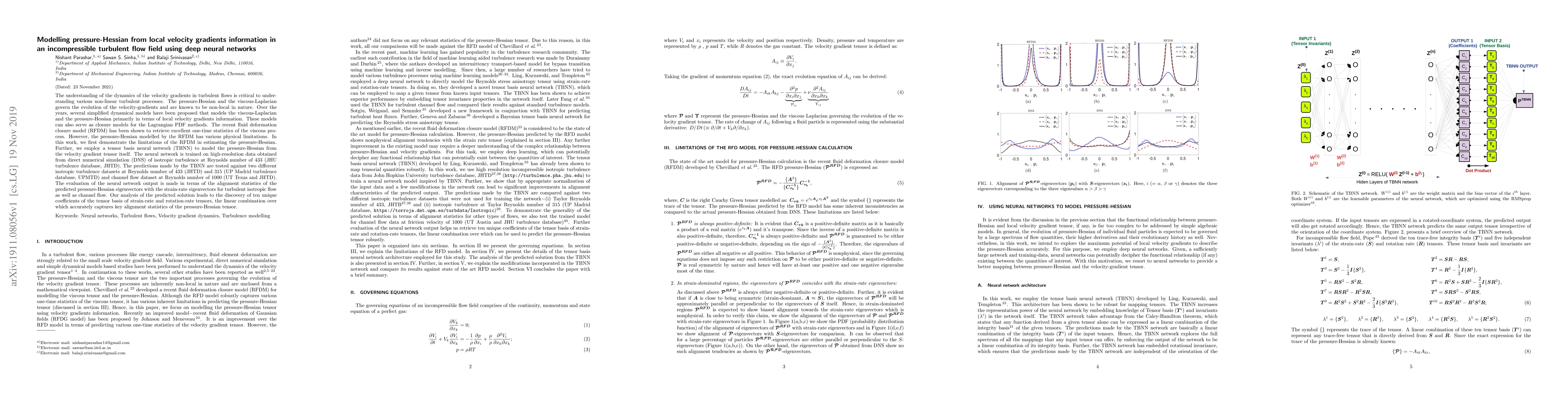 This paper proposes using a tensor basis neural network (TBNN) to model the pressure-Hessian in incompressible turbulent flows from local velocity gradients, addressing limitations of existing models like the RFDM. The TBNN is trained on high-resolution DNS data and validated against various turbulence datasets, showing improved accuracy in capturing alignment statistics of pressure-Hessian eigenvectors.